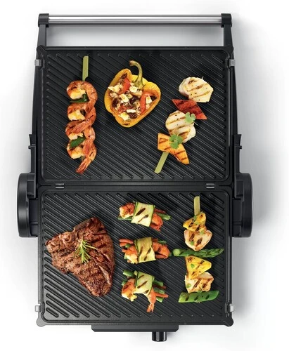 С мощностью 2000 Вт гриль быстро нагревается, гарантируя равномерную прожарку продуктов. Плавный ручной терморегулятор позволяет точно задавать температуру, а функция поддержания тепла не даст блюду остыть раньше времени.