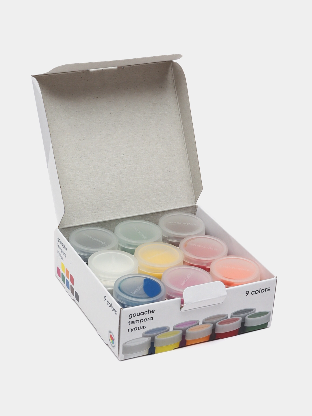 Guaş bo‘yoqlar ErichKrause, 9 rang, 17 ml (qutida 9 ta bo‘yoq) — bu bolalar, talabalar va san’at ixlosmandlari uchun mo‘ljallangan yuqori sifatli va yorqin bo‘yoqlar to‘plami. U rasm chizish va ijodiy mashg‘ulotlarni qulay va zavqli qiladi.