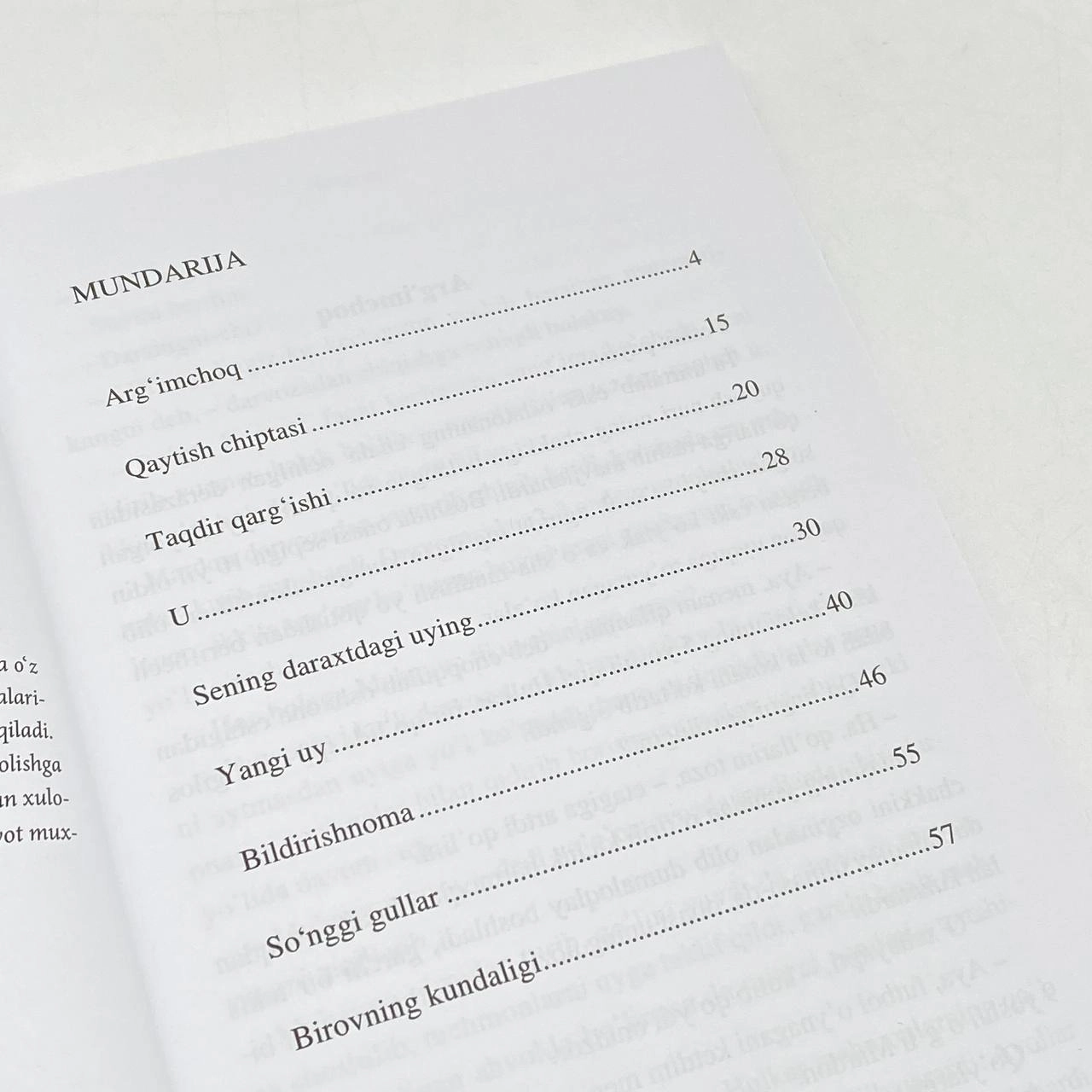 Kitob ikki qismdan iborat bo‘lib, birinchi qismda hikoyalar o‘zbek tilida, ikkinchi qismda esa ushbu hikoyalarning ingliz tilidagi tarjimasi keltirib o‘tilgan. Mazkur hikoyalar chin adabiyot muxlislariga manzur bo‘ladi degan umiddamiz.