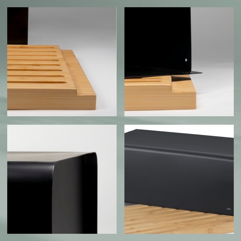 • Под крышкой возможно наличие подставки или разделочной доски — делает хлебницу ещё более функциональной.