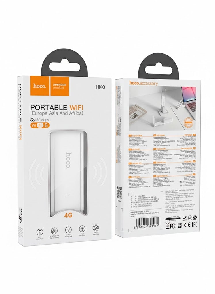 Hoco HI40 — лёгкий, компактный и стабильный портативный Wi-Fi роутер, который обеспечивает быстрый доступ к интернету даже в дороге.