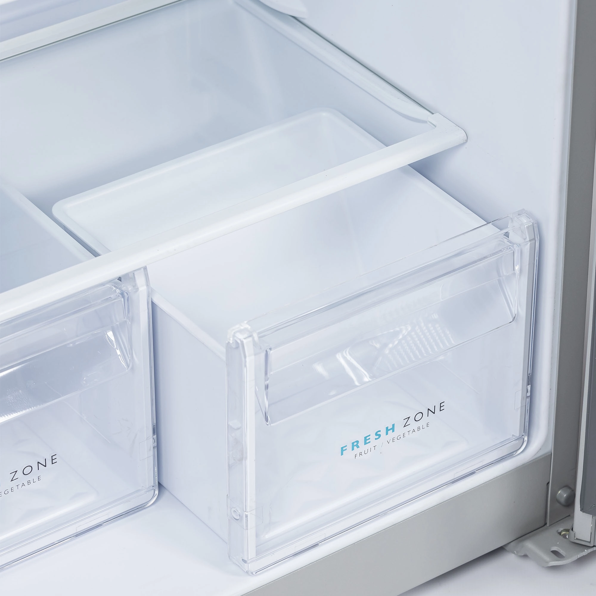 Qurilish va jihozlanish: muzlatkichda ikki kamera va ikki eshik mavjud, eshiklar o‘ngga ochiladi, eshiklar o‘tkaziladigan, tutqich gorizontal va yashirin. Muzlatkich kamerasida 2 tortma, sovutkich kamerasida 3 javon va 2 tortma, sovutkich eshigida esa 4 javon mavjud. Suv dispenseri, muz generatori va shisha idishlar uchun taglik mavjud emas.