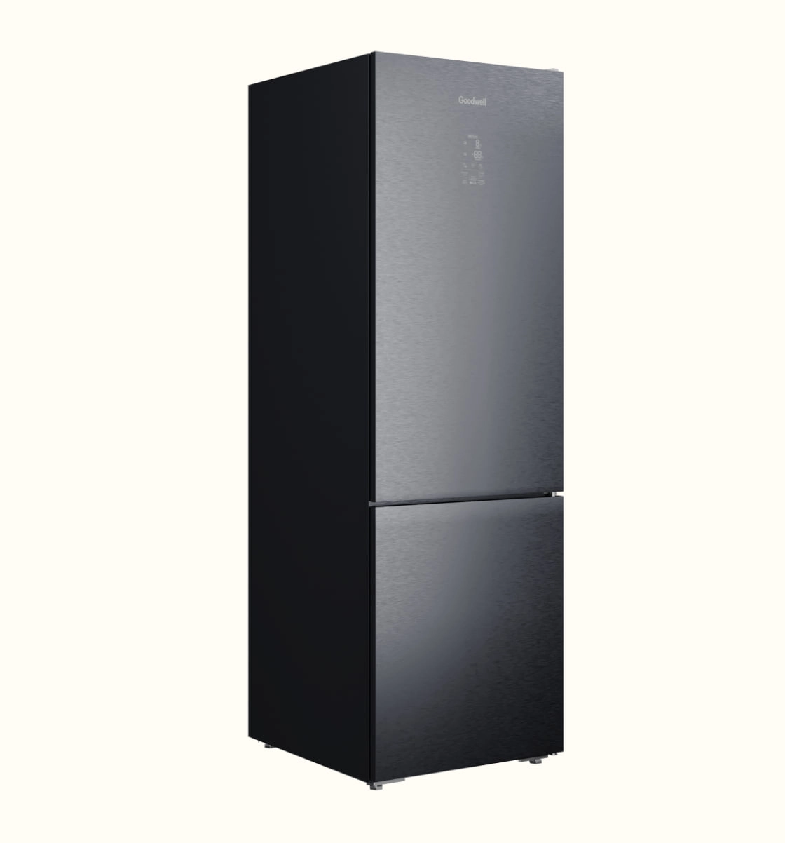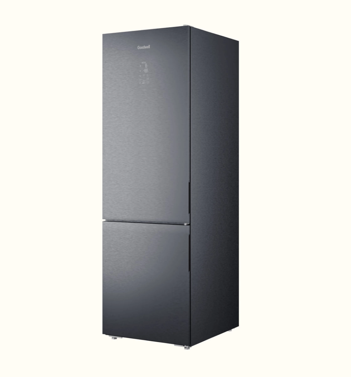 Goodwell GW B432 GRGL2 — bu zamonaviy ikki kamerali sovutgich bo‘lib, pastki muzlatkich bilan jihozlangan va u zamonaviy dizayn, ilg‘or texnologiyalar va qulaylikni birlashtiradi. Qurilmaning umumiy hajmi 432 litr, jumladan 324 litr sovutgich kamerasida va 108 litr muzlatkichda, bu esa katta miqdordagi mahsulotlarni saqlash uchun ideal.