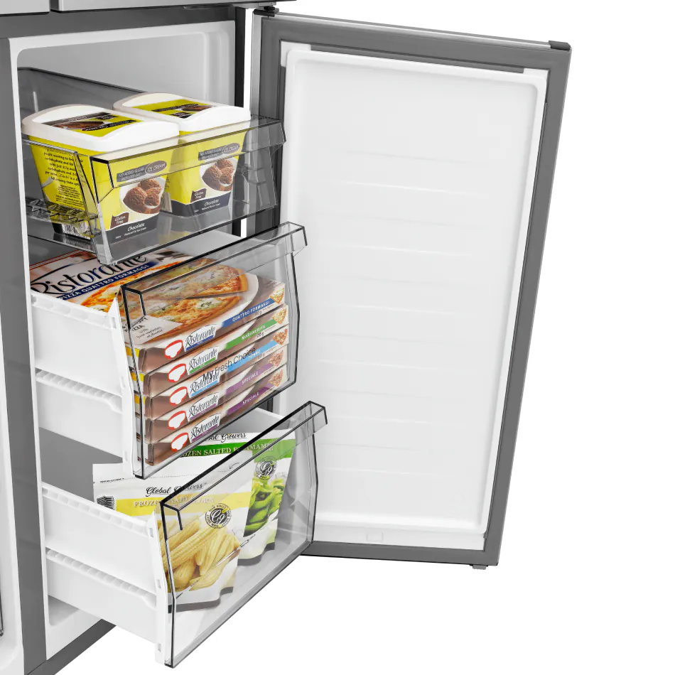 French Door и нижняя морозильная камера — удобный доступ к свежим продуктам и легкая организация пространства.