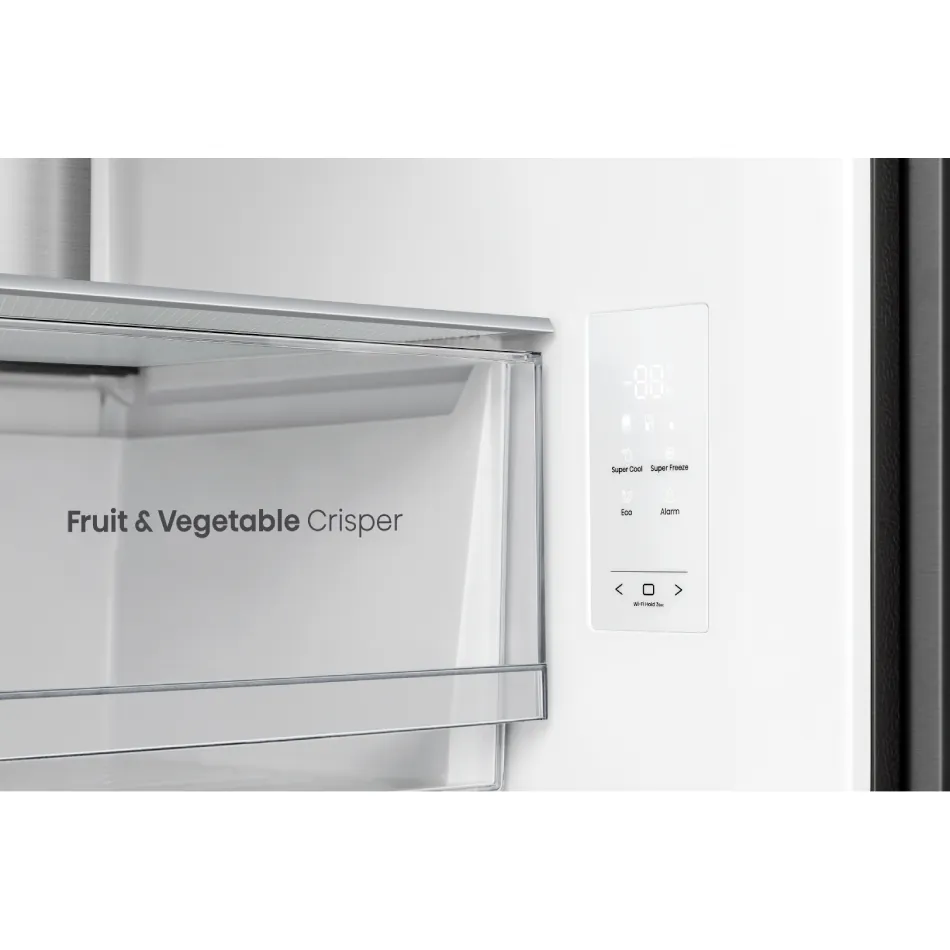 Hisense RQ5P470SAL1 сочетает стильный дизайн с функциональностью: три камеры, вместительный объем 530 л и современные технологии гарантируют идеальные условия для хранения продуктов. Эргономичный French Door дизайн обеспечивает удобный доступ к холодильной и морозильной камере, а зона свежести My Fresh Choice позволяет использовать правую нижнюю камеру как холодильник или морозильник. Система Total No Frost полностью исключает образование инея, Multi Air Flow обеспечивает равномерное охлаждение, а сенсорное управление с LED-дисплеем позволяет легко регулировать параметры. Электронное управление и скрытые ручки добавляют удобства, а инверторный компрессор обеспечивает тихую и энергоэффективную работу.