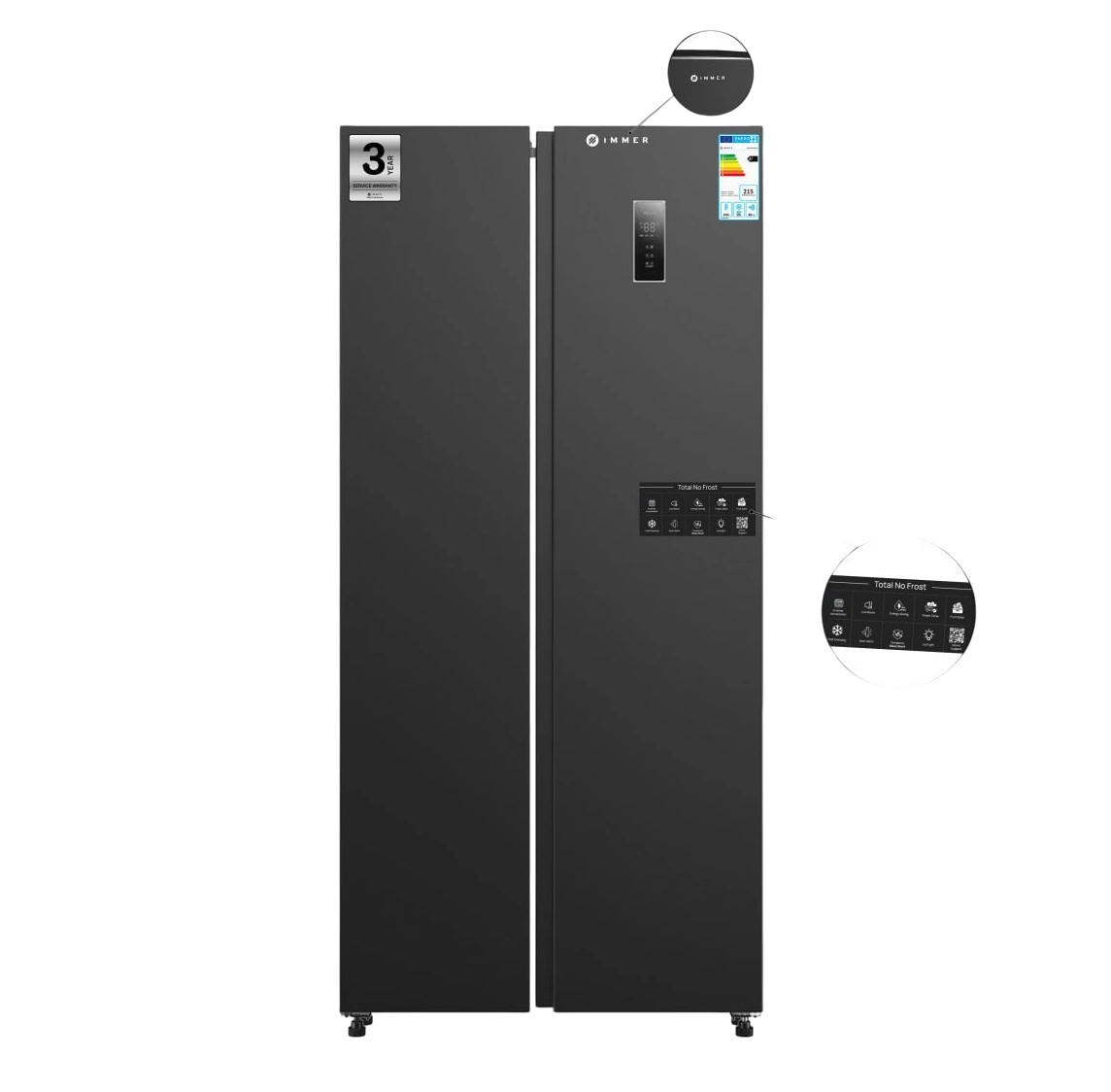 Zamonaviy qulaylik olamiga Immer NF460SBS Dark Gray muzlatgichi bilan qadam qo‘ying — nafis va zamonaviy to‘q kulrang (Dark Gray) rangdagi innovatsion yechim sizning oshxonangizga uyg‘unlik va estetik joziba bag‘ishlaydi.