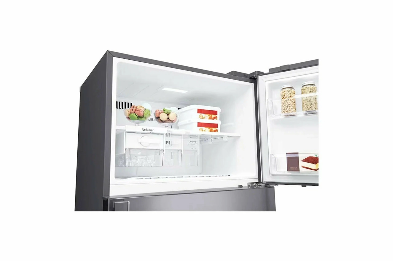 LG GR-H842HLHM — bu yuqori qismida muzlatish kamerasi joylashgan, premium toifadagi sig‘imli ikki kamerali muzlatgich bo‘lib, katta oilalar va qulaylikni qadrlovchilar uchun mo‘ljallangan. Platina kumush rangdagi nafis dizayn oshxona interyeriga mukammal mos keladi va qurilmaning yuqori darajasini ta’kidlaydi.