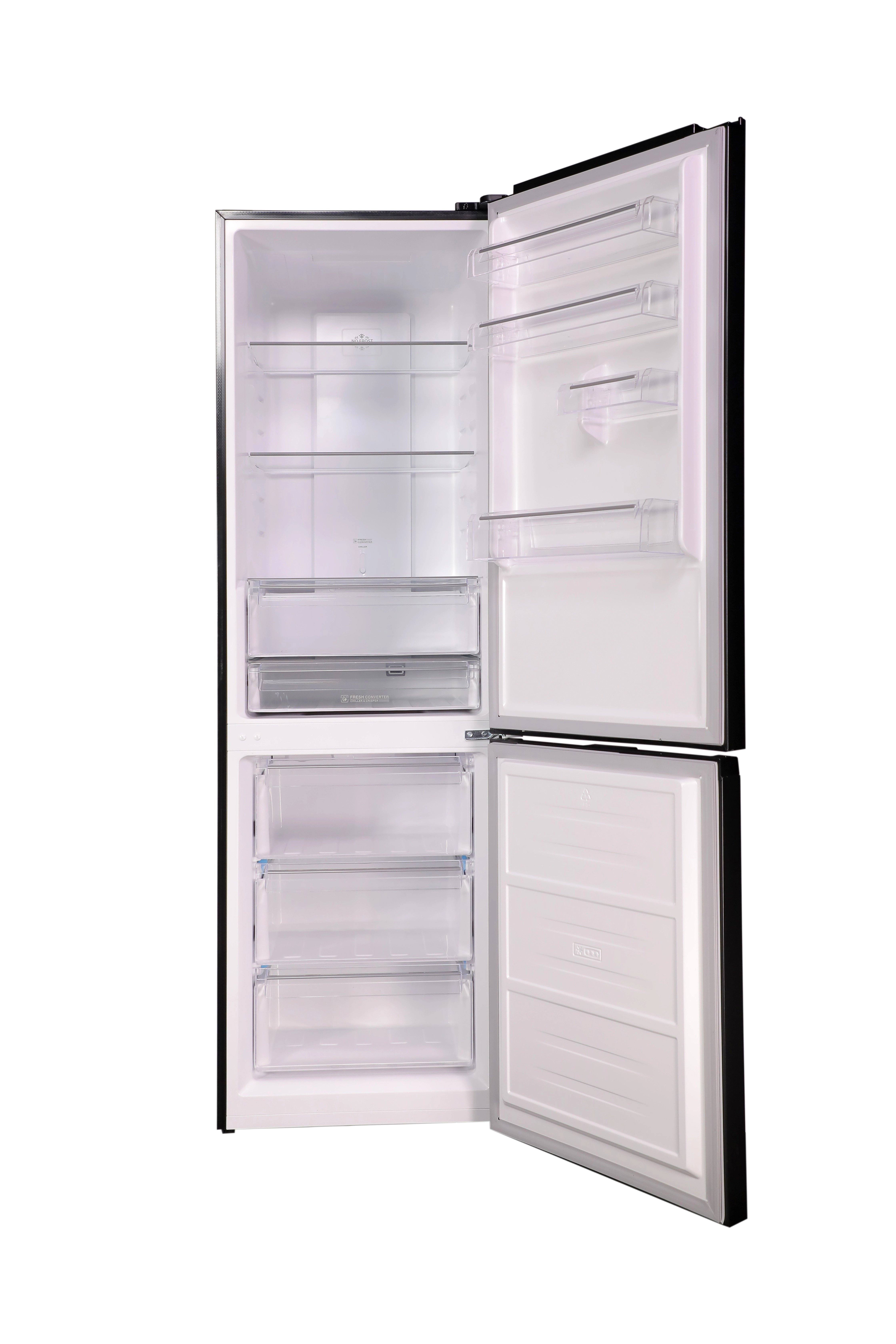 Внутреннее пространство продумано до мелочей: 3 стеклянные полки, 2 ящика для овощей и фруктов, 3 ящика в морозильной камере, а также 4 отделения на дверце позволяют удобно организовать хранение. В комплект входит контейнер для яиц, а яркая LED-подсветка обеспечивает отличную видимость внутри.
