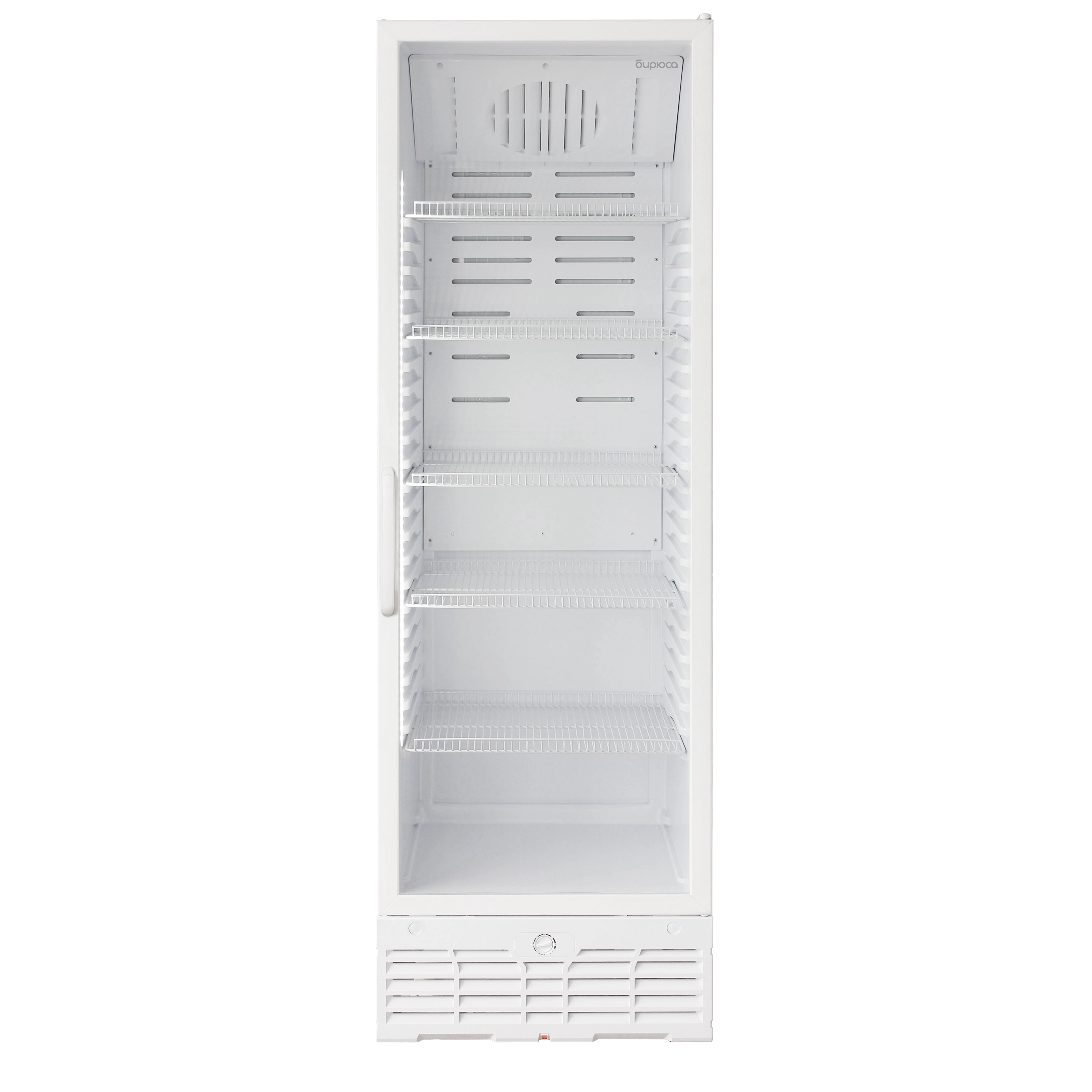 Техника Бирюса 521RN с вертикальным белым корпусом занимает место 67x219.5x67 см, а потому будет хорошо смотреться даже в небольшом магазине. Вместительная камера на 545 л оснащена 5-ю металлическими полками, которые легко переставляются под высоту бутылок и упаковок. Прозрачная дверь оснащена внешней вертикальной ручкой.
