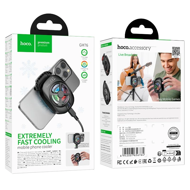 Кулер для телефона HOCO GM76 — это эффективное устройство для охлаждения смартфона во время игр, стриминга или длительного использования. Он предотвращает перегрев и помогает поддерживать стабильную производительность устройства.