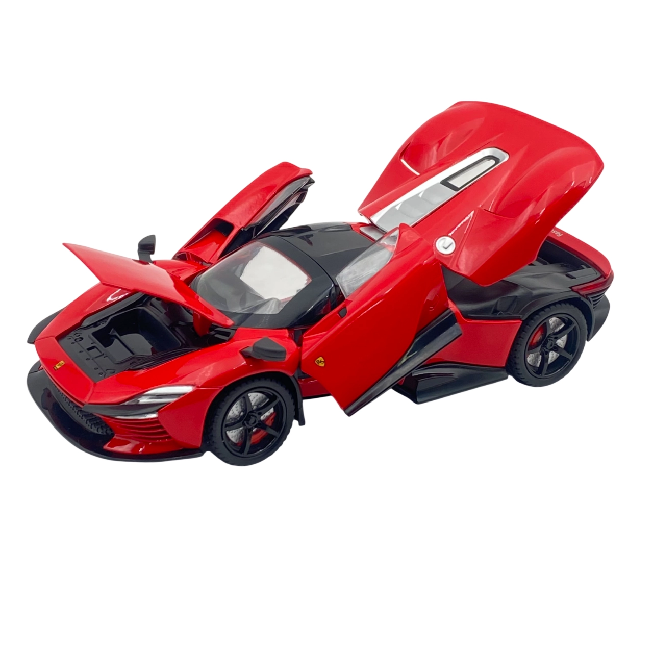 Kolleksionerlar uchun bu haqiqiy Ferrari ning aniq miniatyura nusxasi bo‘lib, sifatli bo‘yoq, metall korpus va funksional eshiklar bilan jihozlangan — vitrina yoki superkarlar to‘plamida ideal, uslubiy ko‘rinadi va yillar davomida mustahkam saqlanadi. Kundalik o‘yin-kulgi uchun ham, jiddiy kolleksiya uchun ham mos keladi.