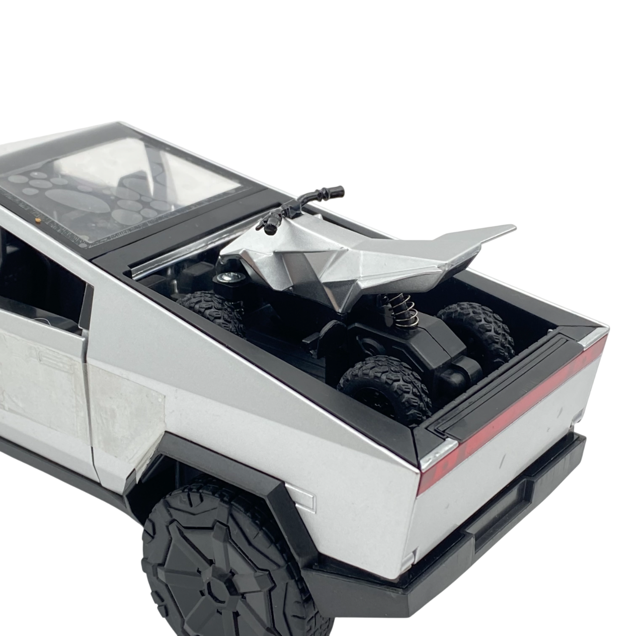 Игрушечная модель Tesla Cybertruck в сером цвете — это современная детская игрушка, выполненная в футуристичном стиле знаменитого электропикапа. Машинка сочетает в себе необычный геометрический дизайн и игровые функции, которые делают процесс игры увлекательным и реалистичным.