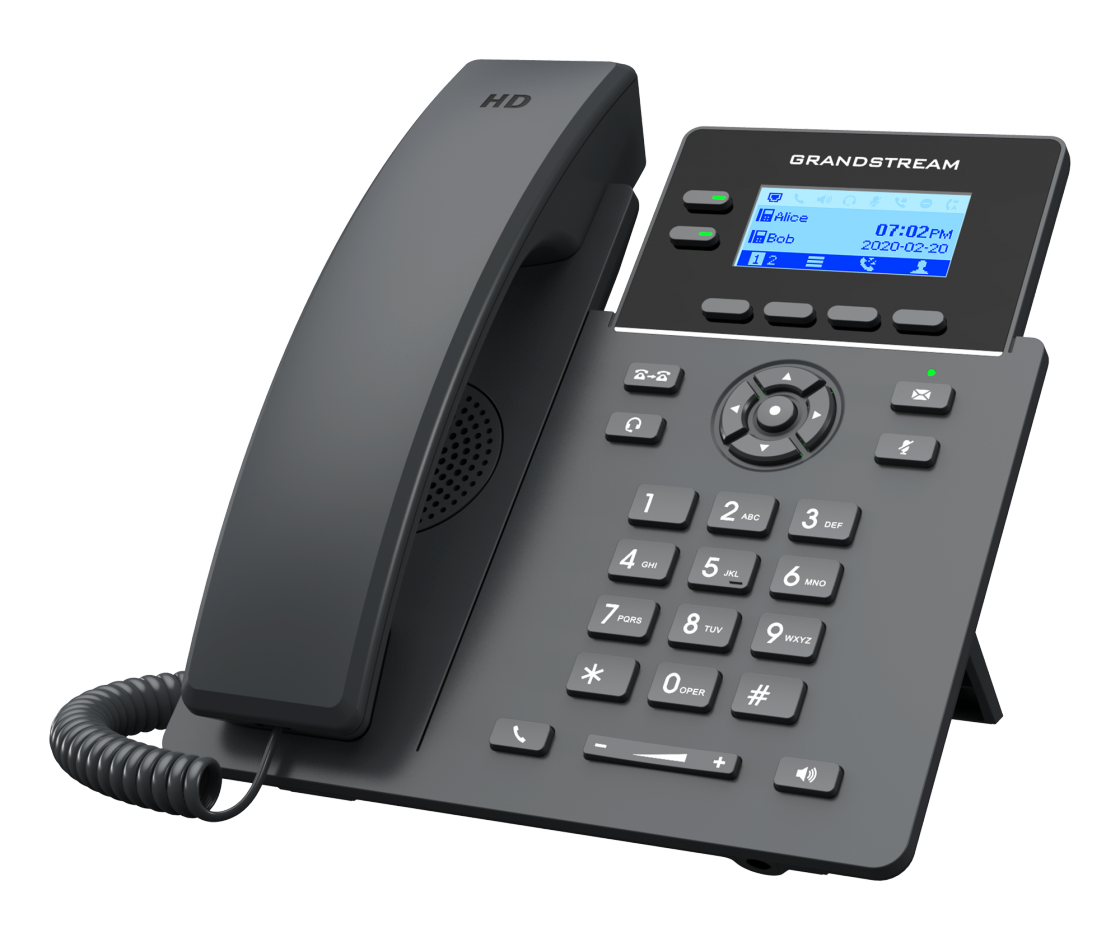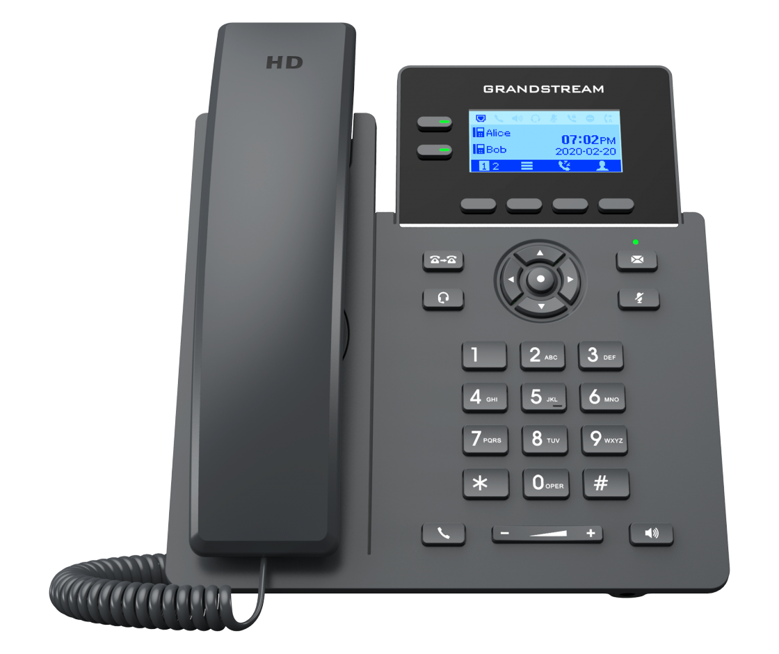 Grandstream GRP2602W оснащён графическим дисплеем 132×48 точек с подсветкой, удобными кнопками навигации и программируемыми клавишами.