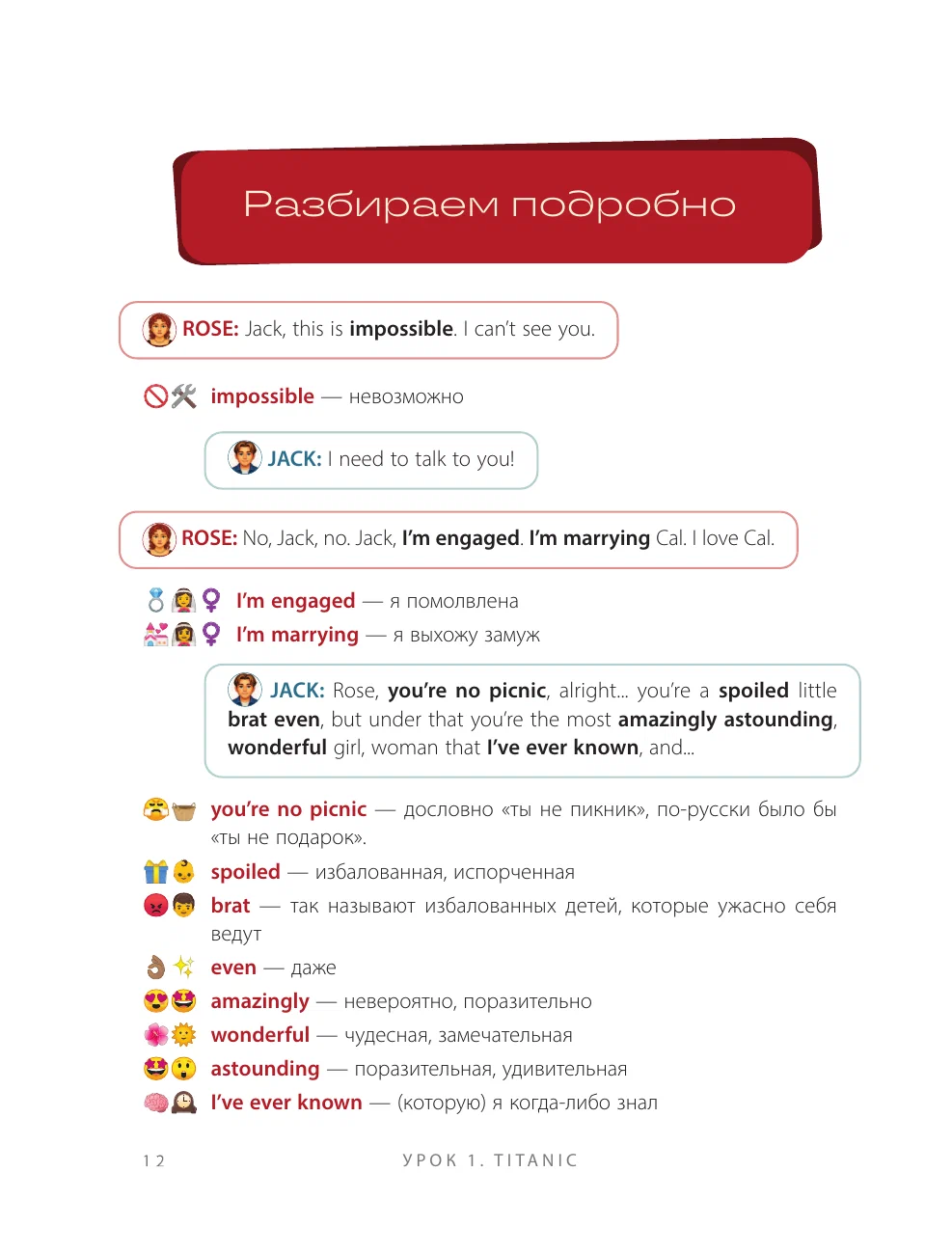Внутри вы найдёте 20 фрагментов из известных фильмов, пошаговый разбор каждой сцены, живую лексику, понятные объяснения, задания, мини-тесты и аудио по QR-кодам. Всё — для того, чтобы вы не просто запоминали слова, а учились понимать и говорить, как носители.