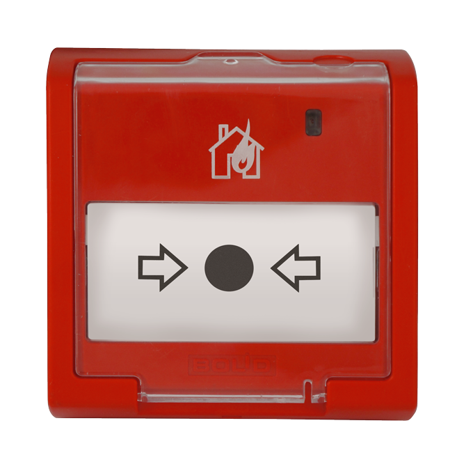 Извещатель активируется путем нажатия на центральную кнопку (рычаг), защищенную прозрачной крышкой.