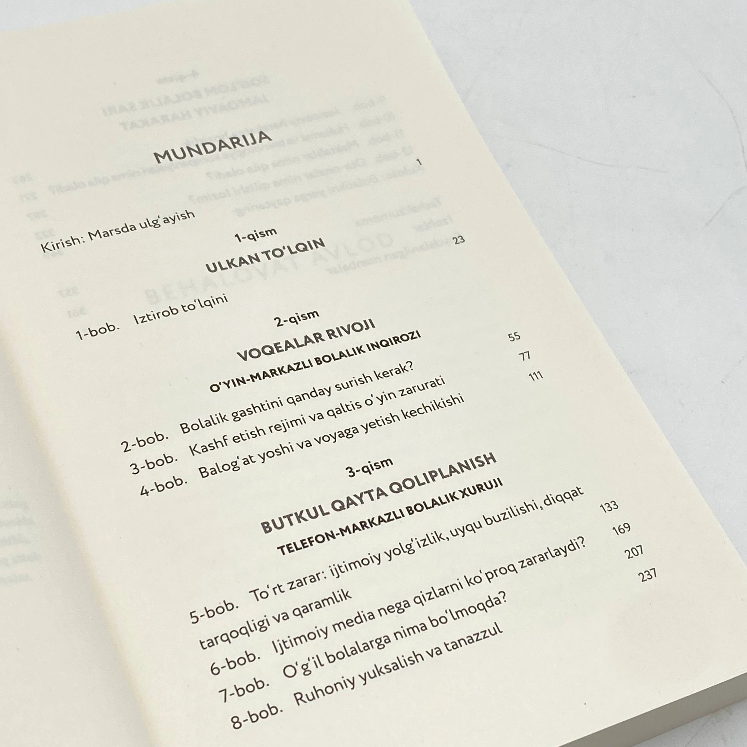 Keyingi yillarda bolalar qanchalik o'zgardi? Nega Z avlod orasida ruhiy salomatlik muammosi bu qadar keskin ko'paydi? Telefon-markazli bolalik qanday qilib o'yin-markazli bolalikni siqib chiqardi? Jonathan Haidt ushbu kitobda zamonaviy bolalikning "butkul qayta qoliplanishi" jarayonini ilmiy dalillar va hayotiy misollar asosida tahlil qiladi; smartfonlar, ijtimoiy tarmoqlar o'smirlar orasida behalovatlik, depressiya va ijtimoiy yolg'izlikka qanday yo'l ochganini yoritadi. Biroq kitob faqat tashxis qo'ymaydi - yo'l-yo'riq ham ko'rsatadi. Muallif ota-onalar, pedagoglar, hukumatlar, boringki, butun jamiyat uchun amaliy tavsiyalar beradi.