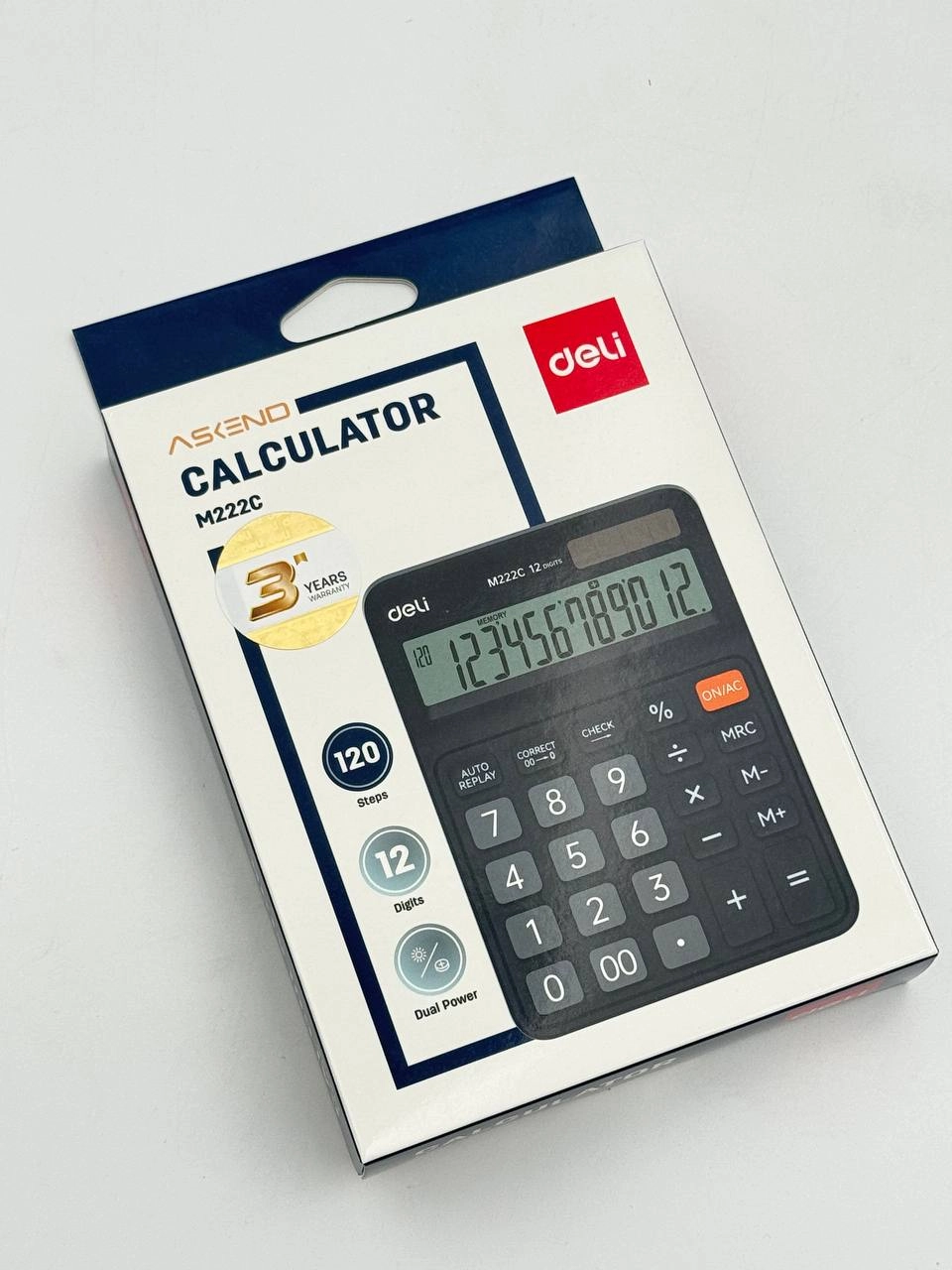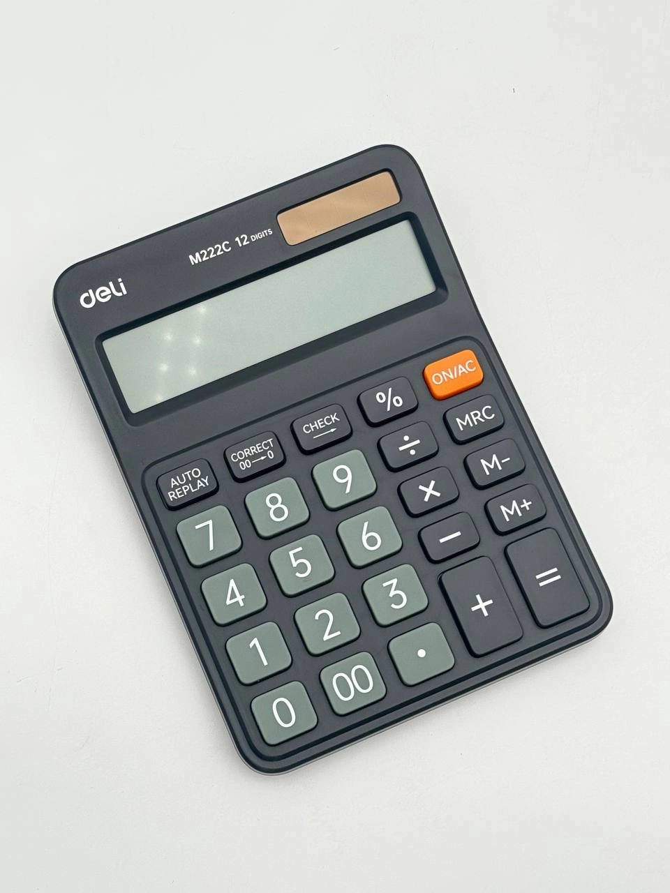 Deli M222C — bu 12 razryadli, qora rangdagi zamonaviy va funksional stol kalkulyatori bo‘lib, yirik va aniq displeyga ega. Ofisda, o‘qishda va kundalik hisob-kitoblar uchun juda qulay.