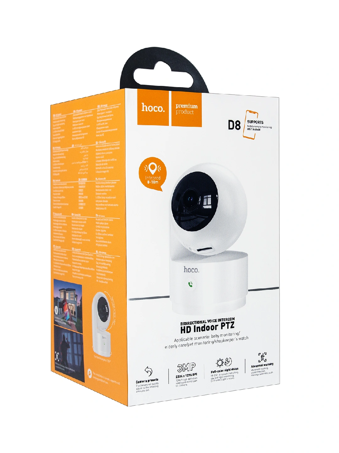 Wi-Fi камера Hoco D8 Indoor PTZ HD — современное и функциональное устройство для организации видеонаблюдения в доме или офисе. Камера обеспечивает качественное изображение, широкий угол обзора и удобное удалённое управление, что делает её надежным решением для контроля помещения.