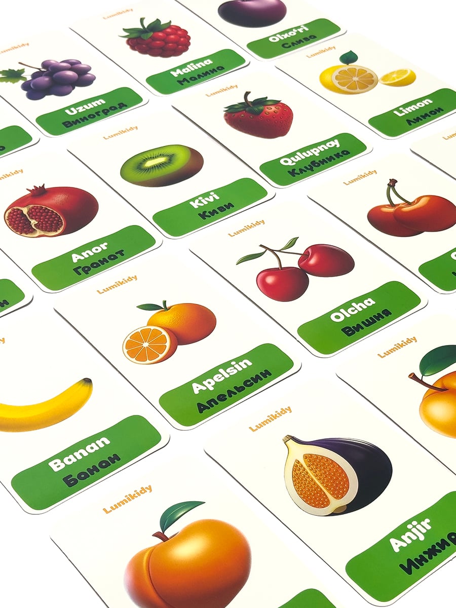 Карточки для развития детей: Mevalar - Фрукты (на русском языке) в Узбекистане