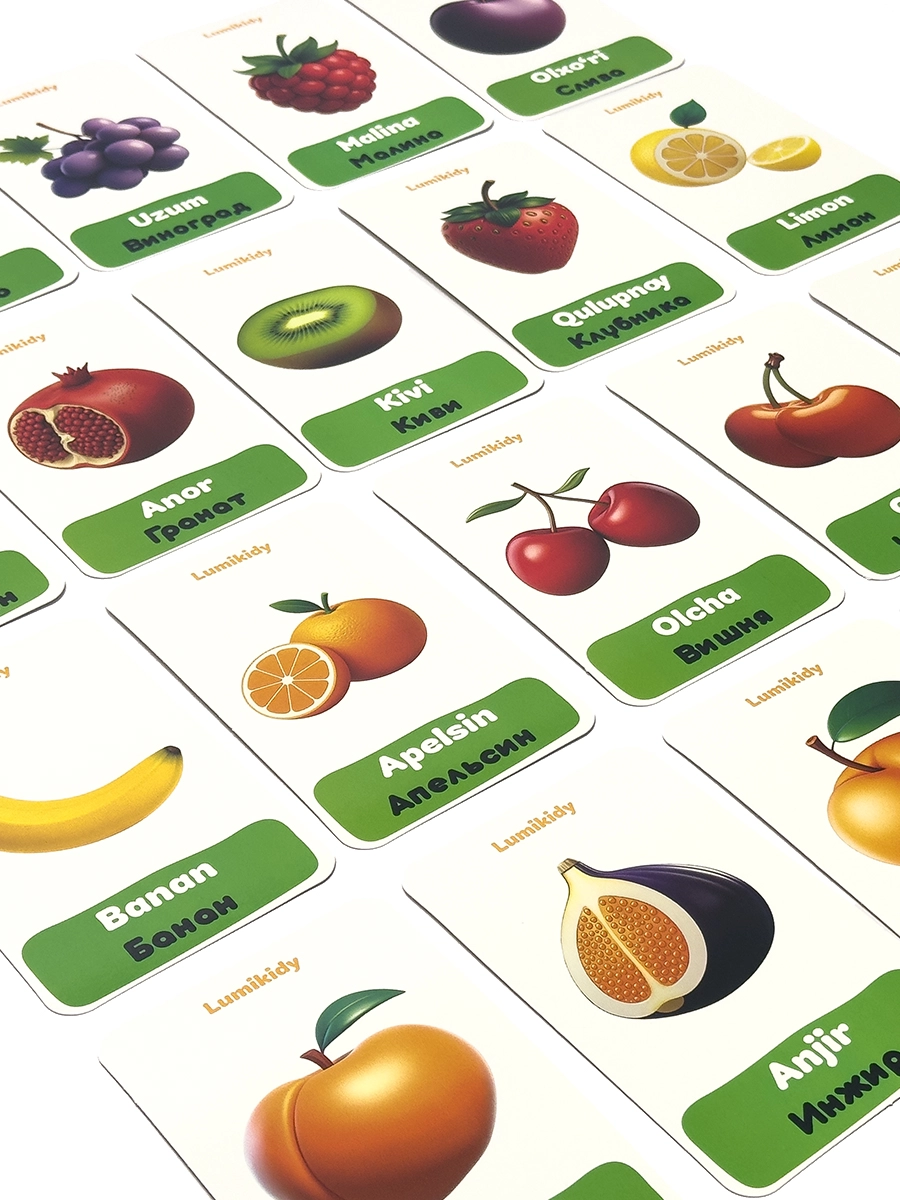 Bolalar rivojlanishi uchun kartochkalar: Mevalar - Фрукты (rus tilida)ni ASAXIYda arzon narxda xarid qiling⭐️Aksiyalar⚡️Kafolat✅Tavsif⌚️Muddatli to'lov⌛️Toshkent va O'zbekiston bo'ylab tezkor yetkazib berish 👉 asaxiy.uz