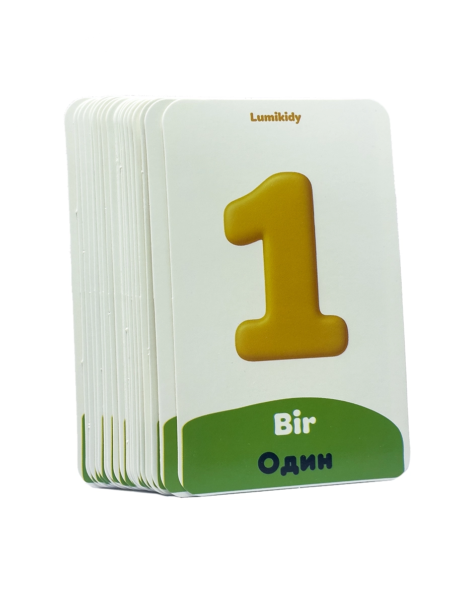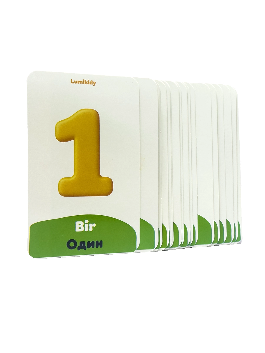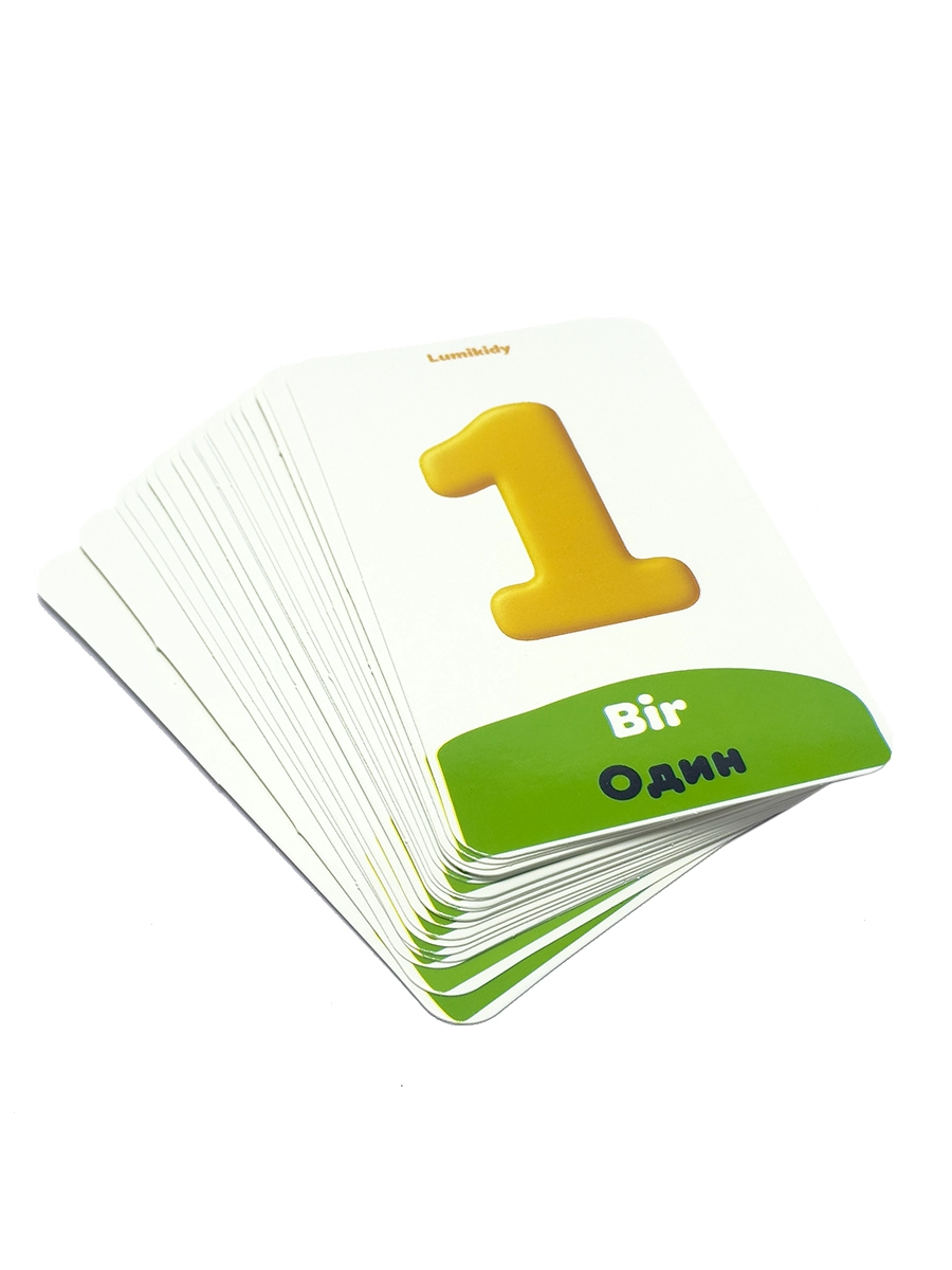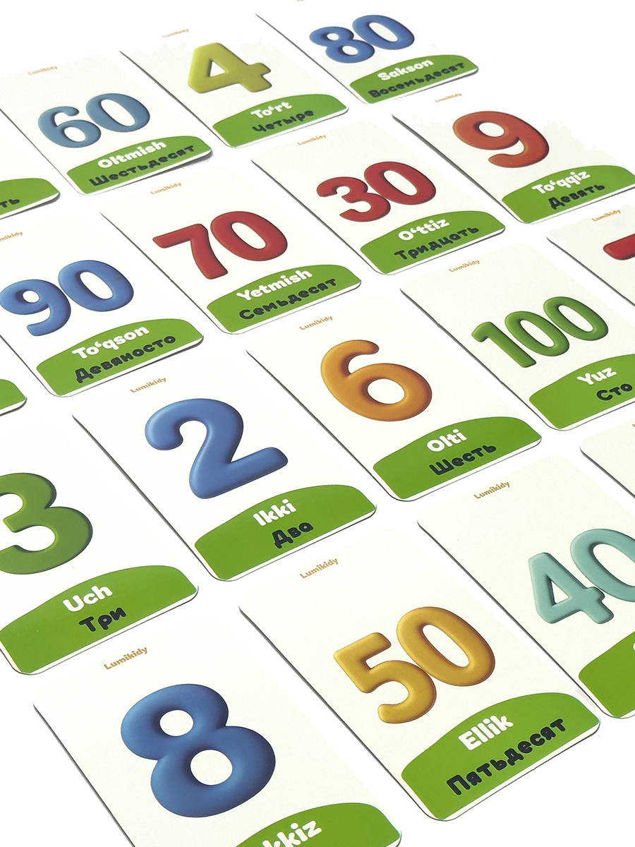 Bolalar rivojlanishi uchun kartochkalar: Raqamlar - Цифры (rus tilida)