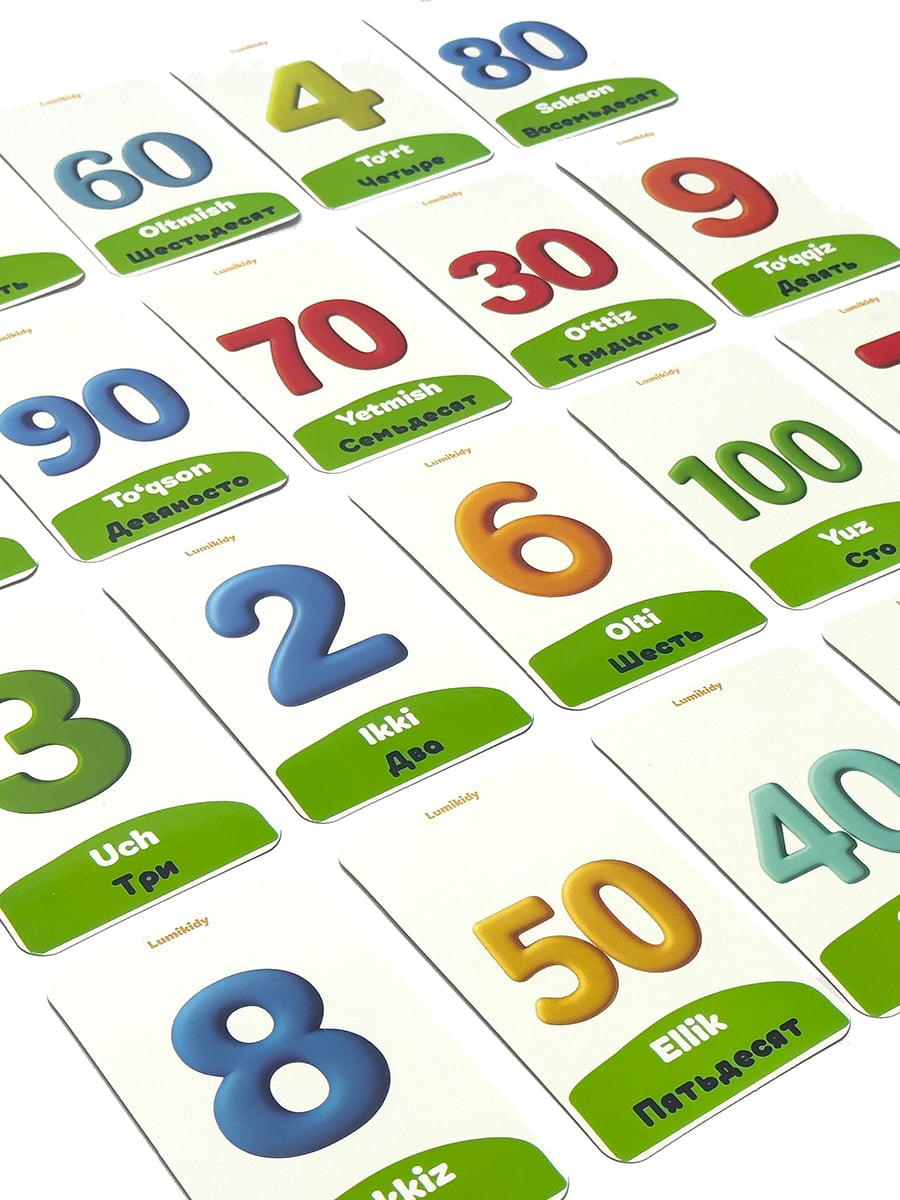 Карточки для развития детей: Raqamlar - Цифры (на русском языке) в Узбекистане