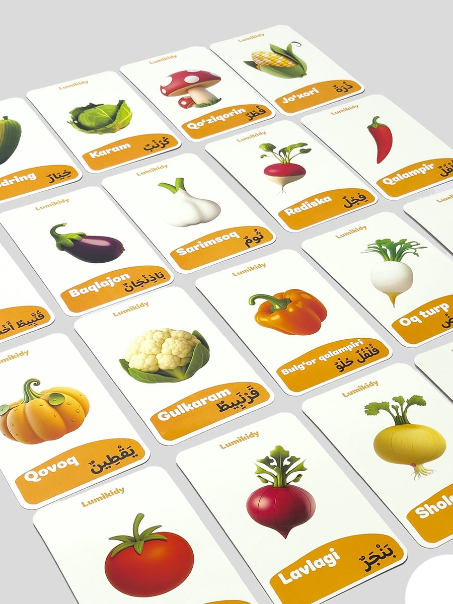 Купить Карточки для развития детей: Sabzavotlar - الخضروات (на арабском языке) по выгодной цене в ASAXIY⭐️Акции⚡️Гарантия✅Описание⌚Рассрочка⌛️Быстрая доставка по Ташкенту и Узбекистану 👉 asaxiy.uz