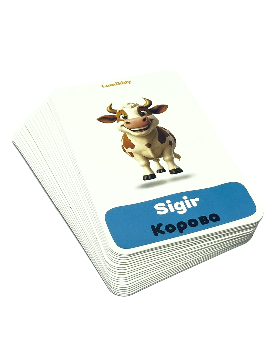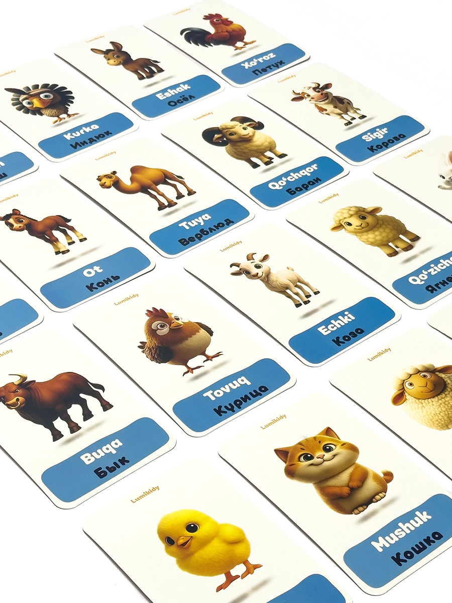 Bolalar rivojlanishi uchun kartochkalar: Uy hayvonlar - Домашние животные (rus tilida)