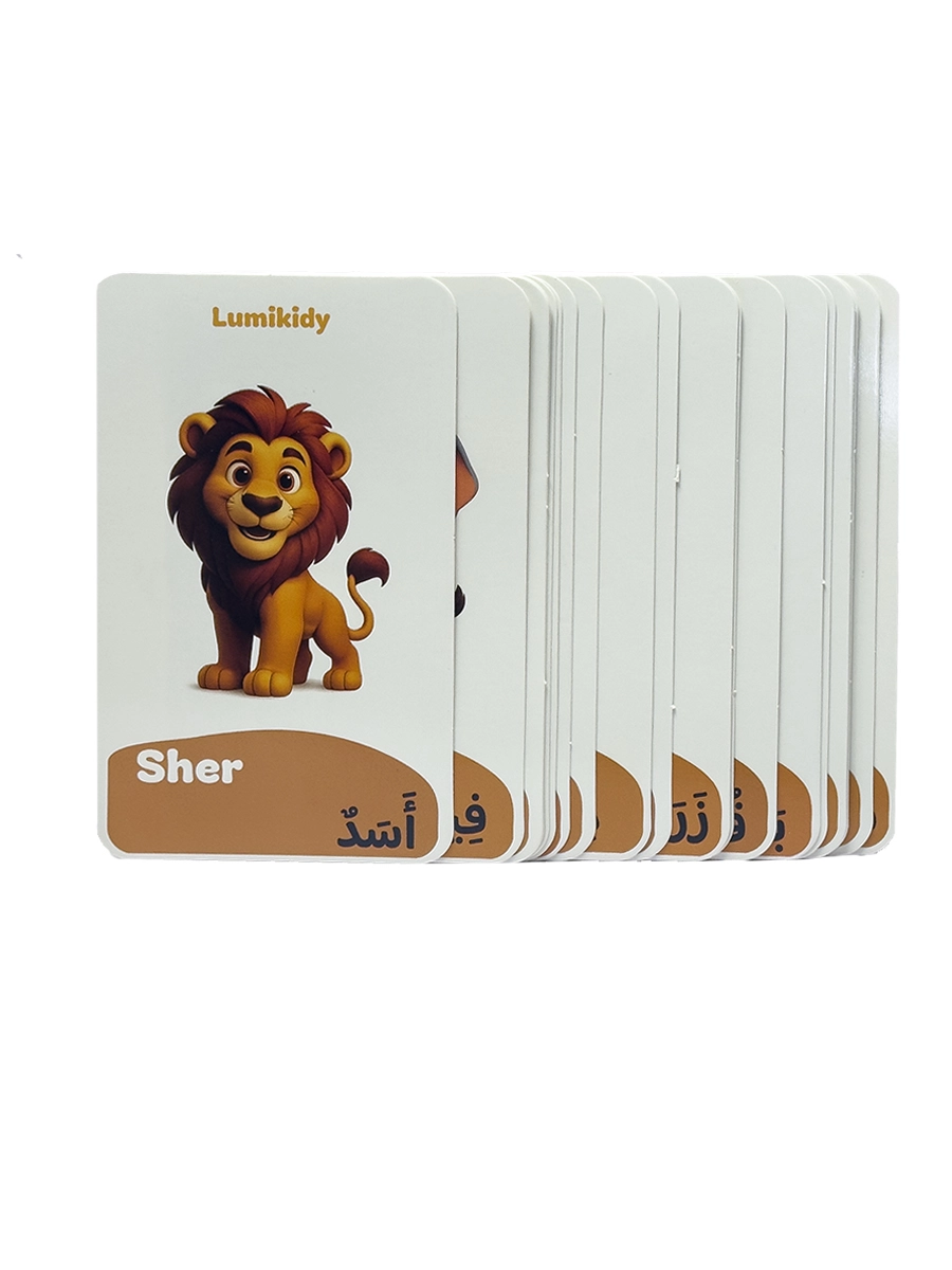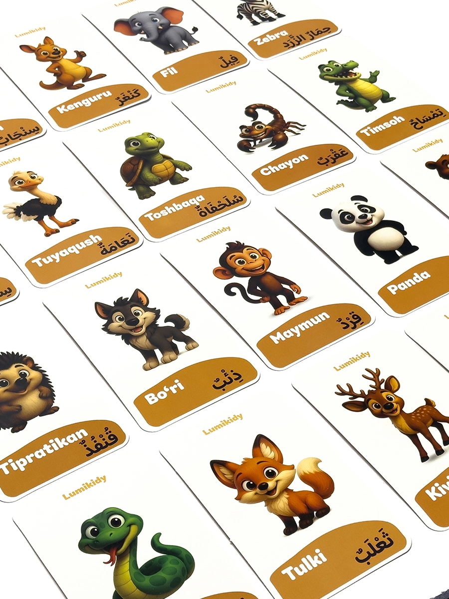 Bolalar rivojlanishi uchun kartochkalar: Yovvoyi hayvonlar - الحيوانات البرية (arab tilida)