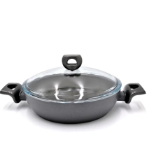 28 sm diametr va 7 см balandlik — past dizaynli shakli bilan ovqat tayyorlash jarayonida yog‘ sachrashini kamaytiradi, shu bilan birga keng ish maydoni beradi.