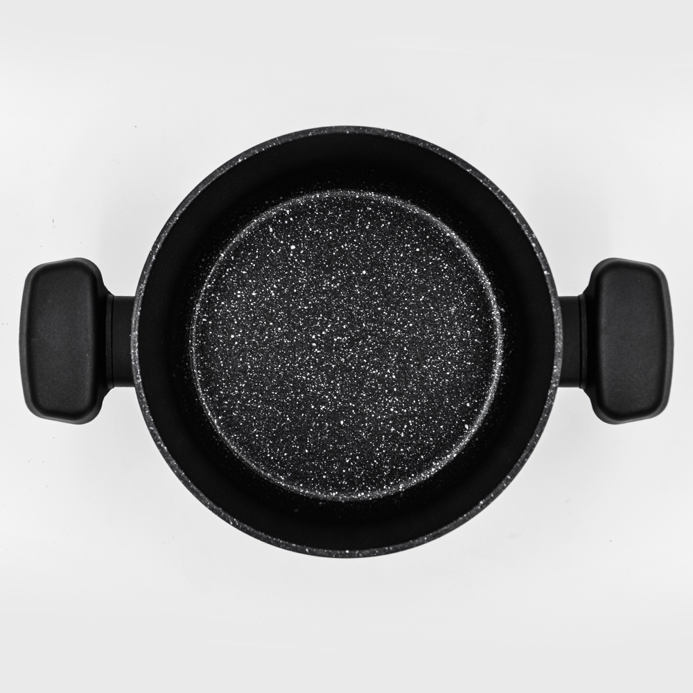Каменное антипригарное покрытие препятствует пригоранию и позволяет готовить с меньшим количеством масла.