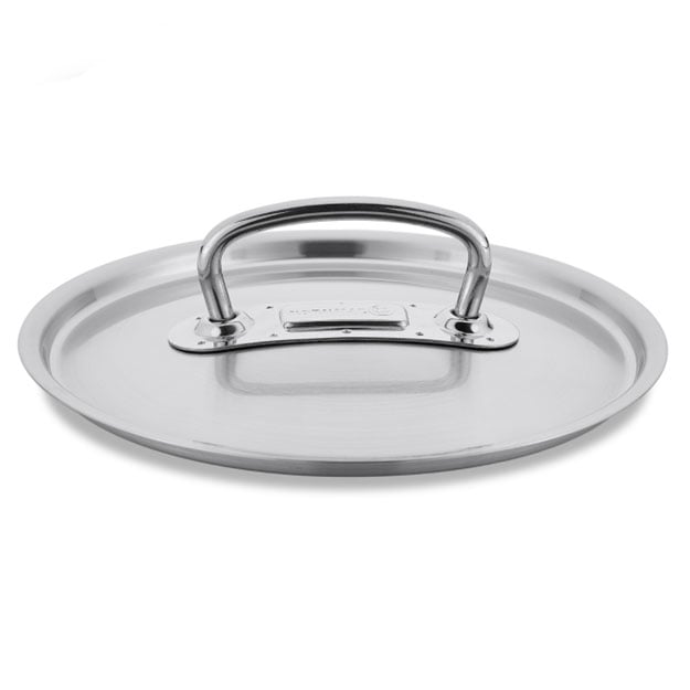 Крышка изготовлена из нержавеющей стали и плотно прилегает к краям кастрюли, удерживая пар и тепло внутри. Это помогает сохранять аромат и полезные вещества в блюдах, а также ускоряет процесс приготовления.