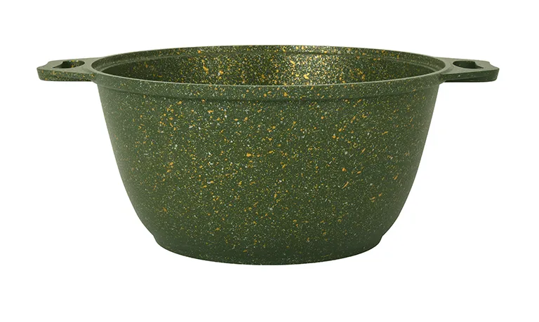 Кастрюля объёмом 3 литра из серии Trendy Style (Malachite) сочетает удобство, долговечность и эстетичный внешний вид. Корпус выполнен из литого алюминия, который быстро нагревается, равномерно распределяет тепло и предотвращает перегрев по краям. Глубокий малахитовый цвет создаёт эффектный акцент на кухне, а цельнолитые ручки обеспечивают надёжный и безопасный захват даже при полной загрузке.