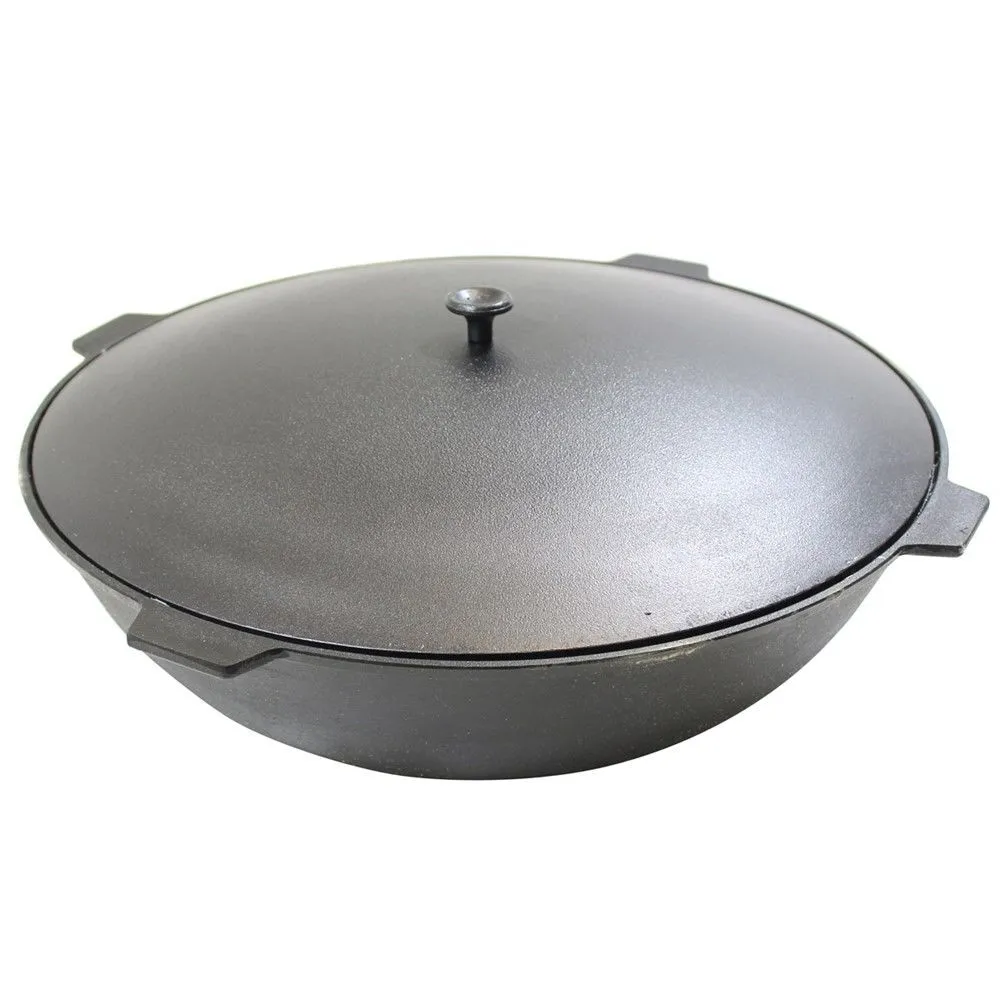 Чугунный казан объёмом 10 литров с алюминиевой крышкой — идеальная посуда для плова, шурпы, баранины и других мясных блюд. Подходит для использования дома и на открытом воздухе: дача, поход, рыбалка.