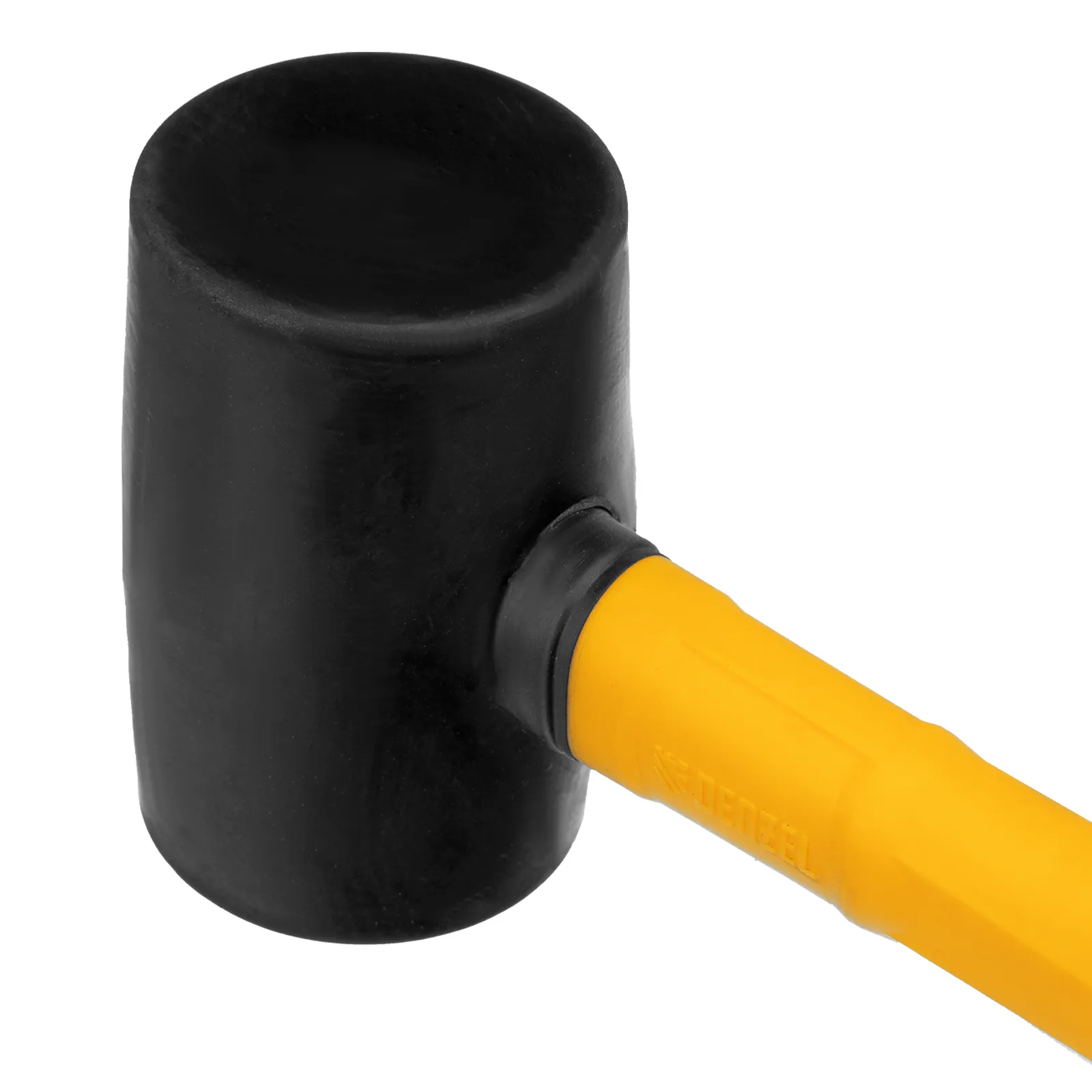 Denzel 11145 — это профессиональная резиновая киянка весом 680 г, оснащённая бойком из прочной чёрной резины и эргономичной фибергласовой рукояткой с TPR-покрытием. Благодаря увеличенному весу и диаметру бойка (62 мм) инструмент обеспечивает более мощные удары, сохраняя при этом аккуратность работы. Он одинаково эффективен при сборочных, монтажных и кузовных работах, а также при укладке плитки и работе с деликатными материалами.