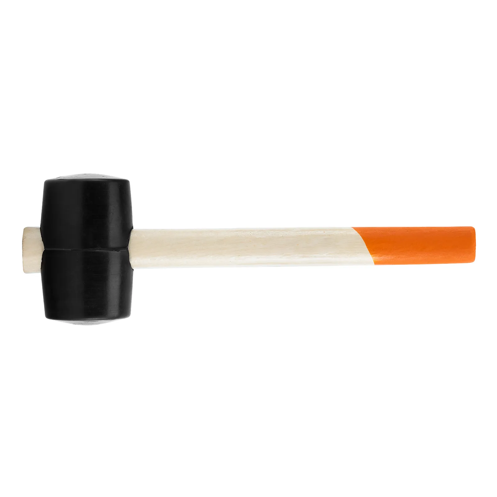 Рабочая часть выполнена из прочной резины с твёрдостью 80 ед. по Шору, что гарантирует высокий ресурс и устойчивость к износу. Боек закреплён на рукоятке методом протяга, поэтому исключается риск его срыва во время эксплуатации. Деревянная ручка покрыта прозрачным лаком, защищающим её от рассыхания и растрескивания, что продлевает срок службы инструмента.