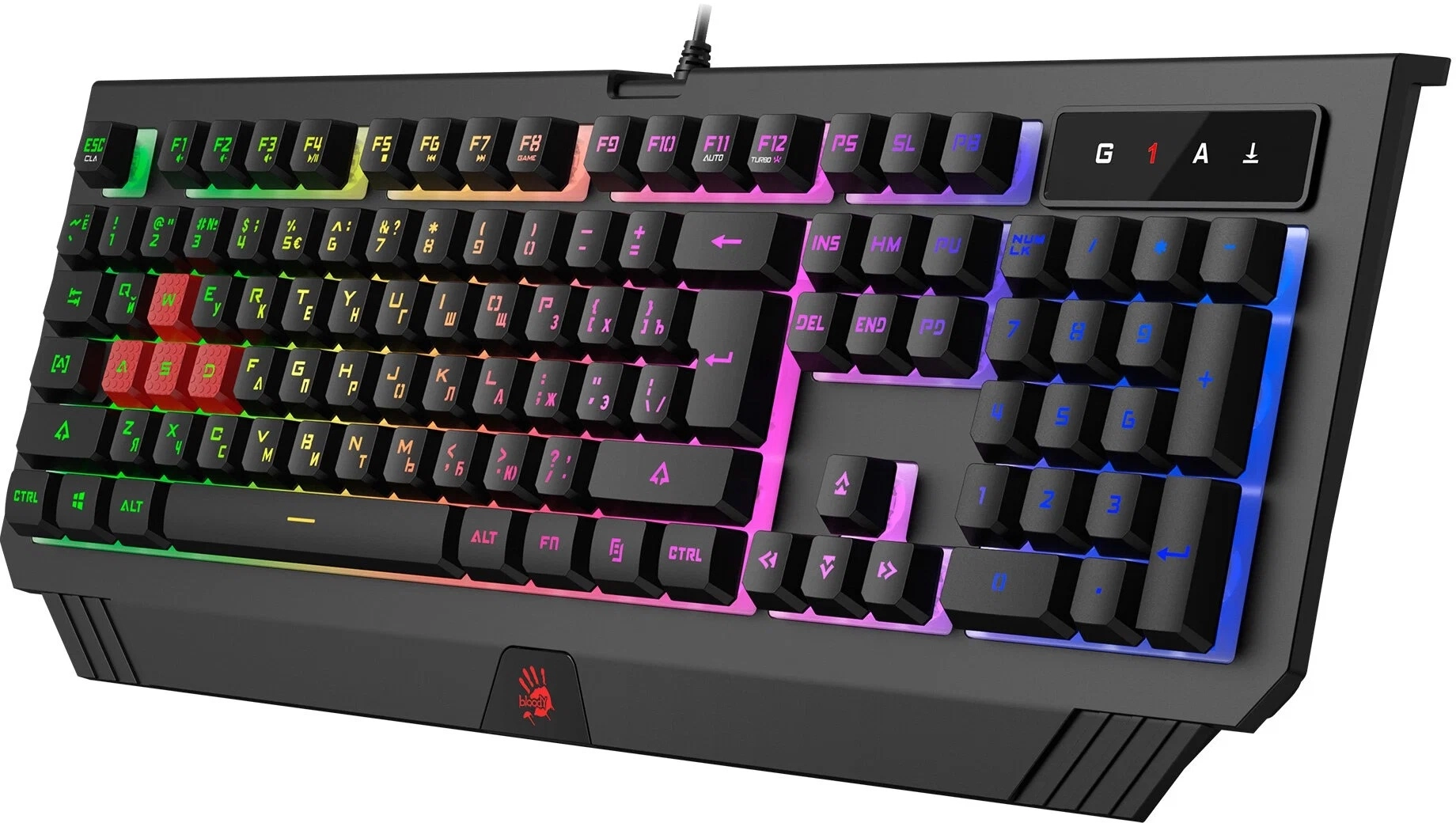 Клавиши на клавиатуре A4Tech Bloody B120N имеют RGB-подсветку, что придаст любой игре больше динамики и азарта. Кроме того, все буквы и символы на клавишах будут отчетливо видны даже в темноте. Для удобства на клавиатуре предусмотрен отдельный цифровой блок и функциональные клавиши. Также есть 4 съемные клавиши WASD из силикона, используемые для перемещения в играх. За счет выдвижных ножек клавиатуру можно поставить под удобным для игрока углом. А прорезиненные вставки обеспечивают ее неподвижность в процессе игры.