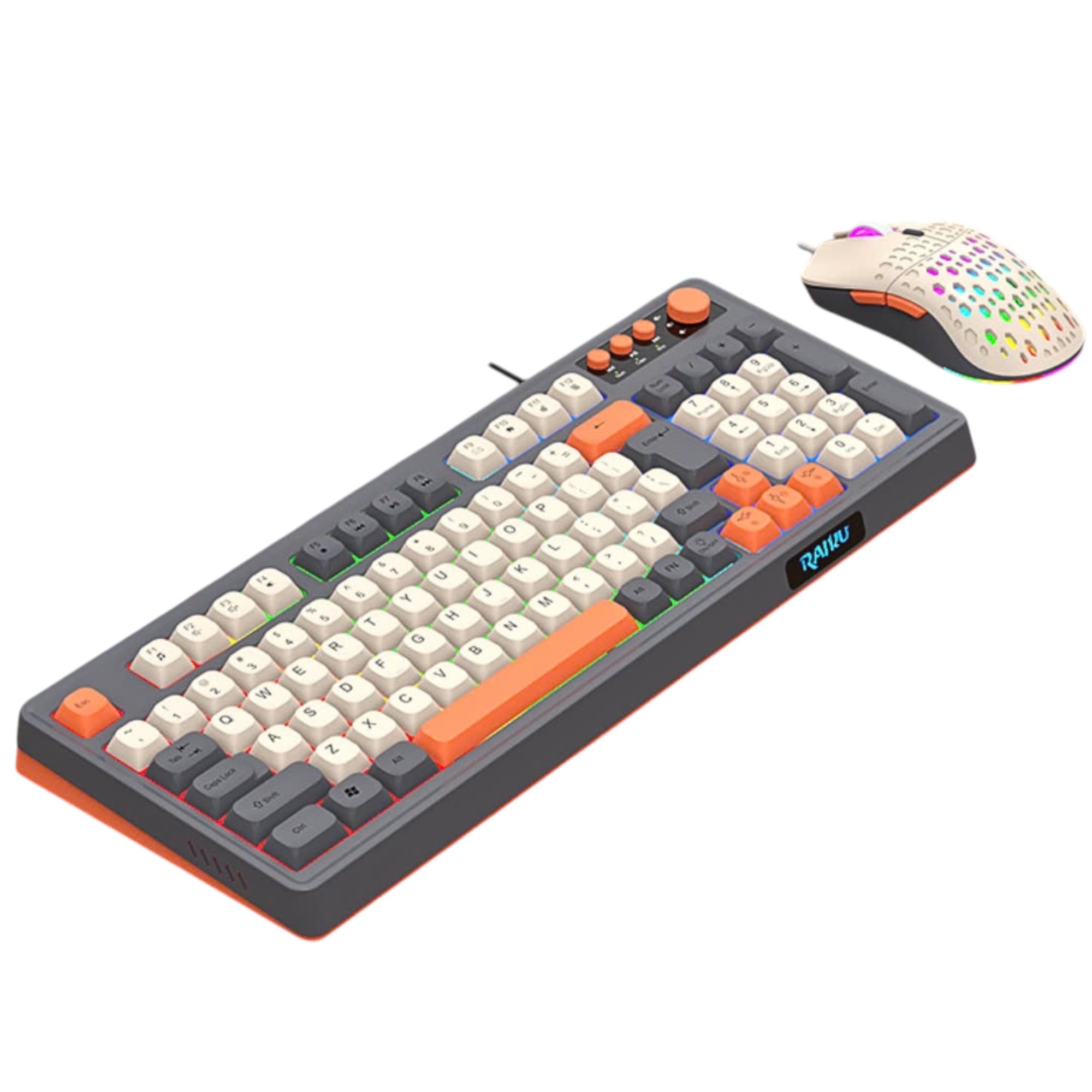 1 год гарантии от производителя Примем товары в течении 10 дней и сразу вернём деньгиRaiku T-98 — это современный и функциональный комплект клавиатуры и мыши, предназначенный для игр и офисной работы. Комплект отличается эргономичным дизайном, высокой точностью сенсора и RGB-подсветкой.
