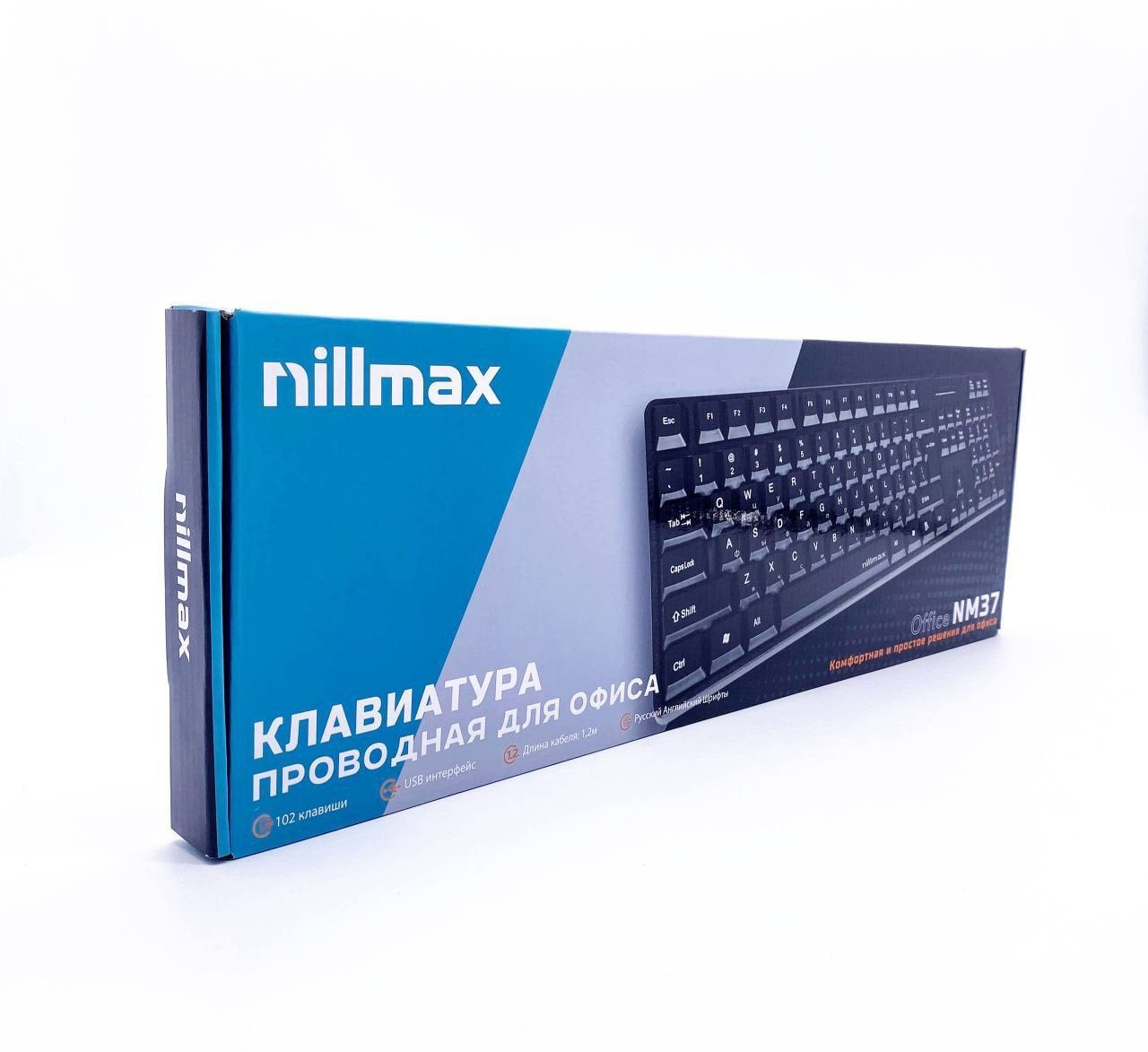 Nilmax Office NM37 — проводная клавиатура через USB, предназначенная для работы в офисе и дома. Тихие и удобные клавиши обеспечивают комфорт при длительной работе. Корпус прочный и износостойкий, оснащён двуязычной раскладкой (русские и английские буквы). Клавиатура не требует установки драйверов — достаточно подключить к USB‑порту, и устройство готово к использованию. Эргономичный дизайн повышает удобство при долгой работе, некоторые модели оснащены мультимедийными клавишами.