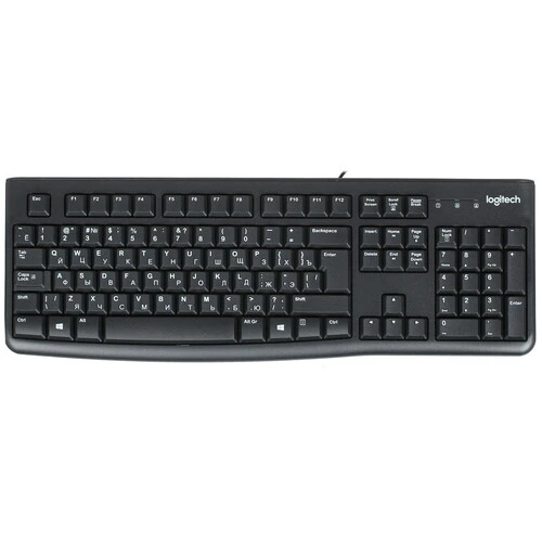 Клавиатура проводная Logitech K120 [920-002522] – удобная и надежная рабочая модель с классическим дизайном. Полноразмерная раскладка с отдельным цифровым блоком облегчает работу с цифрами, а глубокие клавиши обеспечивают быстрый и комфортный набор текста. Устройство подключается через USB-кабель длиной 1.5 м, не требуя установки ПО или дополнительной настройки. Модель совместима с разными версиями Windows, обеспечивая стабильную работу на различных устройствах. Пластиковый корпус защищен от брызг и проливания, оснащен удобными наклонными ножками. Мембранные клавиши выдерживают до 10 млн нажатий, работают тихо и плавно, не раздражая пользователя и окружающих. Формат клавиатуры – полноразмерная, раскладка – ISO, язык клавиш – русский и английский, низкопрофильные клавиши и подсветка отсутствуют. Функционально присутствует цифровой блок, колесо прокрутки и клавиша Fn отсутствуют, одновременные нажатия и программируемые клавиши не поддерживаются. Подключение – проводное через USB Type-A, длина кабеля 1.5 м, разъемы для наушников и микрофона отсутствуют. Питание осуществляется от USB, в комплекте – документация.