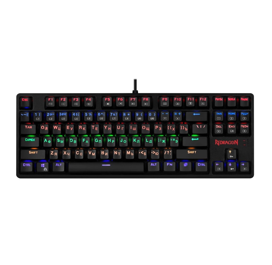 Клавиатура Redragon Daksa обеспечит пользователя непревзойденным уровнем комфорта и подарит удовольствие от прохождения игр любого жанра. Модель с интересным дизайном стала обладательницей 87 механических клавиш Outemu Blue с многоцветной подсветкой. Они максимально точно и молниеносно откликаются на нажатия, имея при этом хороший ресурс в 50 млн. нажатий. Для изготовления корпуса периферии используется сочетание прочного металла и практичного в уходе пластика черного цвета.