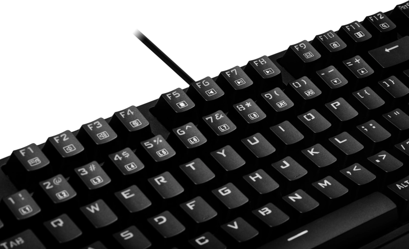 Компактная клавиатура Outemu Blue имеет клавишу функций Fn, расширяющую ее функционал при работе за компьютером. Модель защищена от попадания воды: брызги ей точно не страшны. 19 режимов подсветки позволят подобрать наиболее приятный для вас внешний вид устройства, чтобы привычная работа за компьютером приносила вам радость. Подключение клавиатуры к компьютеру осуществляется при помощи 1.8-метрового кабеля с позолоченным коннектором USB на конце. Имеется возможность блокировки клавиши Windows, что особенно актуально при прохождении игр. Обладающая размерами 360x36x130 мм (ширина, высота и глубина соответственно), клавиатура весит 900 г.