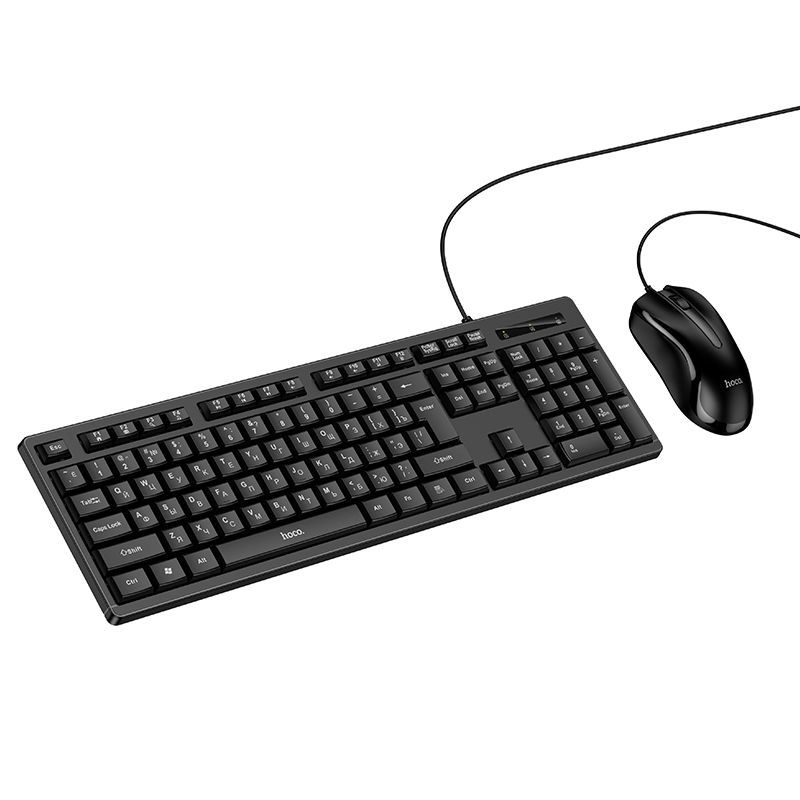 HOCO DI91 — bu ofis uchun mo‘ljallangan, simli “klaviatura + sichqoncha” komplekti bo‘lib, kundalik kompyuter ishlari uchun ideal yechimdir. To‘plam standart o‘lchamdagi membranli klaviatura va simmetrik shakldagi optik sichqonchani o‘z ichiga oladi. Klaviaturada matn kiritish uchun qulay tugmalar mavjud, sichqoncha esa kursorni 1200 dpi gacha aniqlik bilan boshqaradi. USB interfeysi orqali ulanish amalga oshiriladi, bu esa aksessuarni ko‘pgina kompyuterlar va noutbuklar bilan mos qiladi.