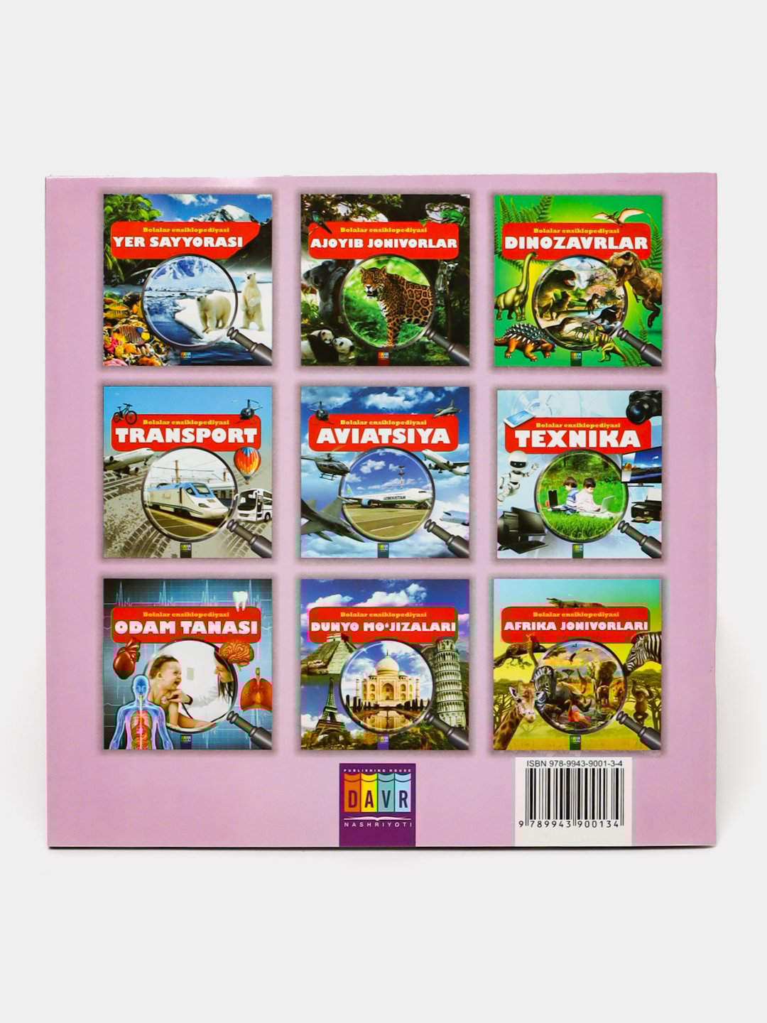 5 ёшдан ошган болалар учун рангли энциклопедия. Қалин қоғоз, юқори сифатли чоп этиш, катта расмлар - бу китобни сиз қўйиб юборишни хоҳламайсиз. Инсоннинг дунёқарашини кенгайтиришга ёрдам беради, ёшлигидан китоб ўқишга меҳр уйғотади. Шахсий кутубхонангизга ажойиб совға ёки қўшимча қилади.