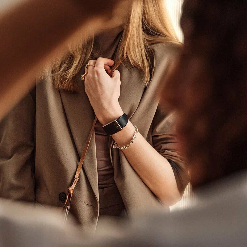 Кожаный ремешок для браслета Whoop 5.0 (ONE, PEAK) LeatherLuxe Band (Black / Titanium) Small 14mm — это премиальный аксессуар для вашего смарт-браслета.