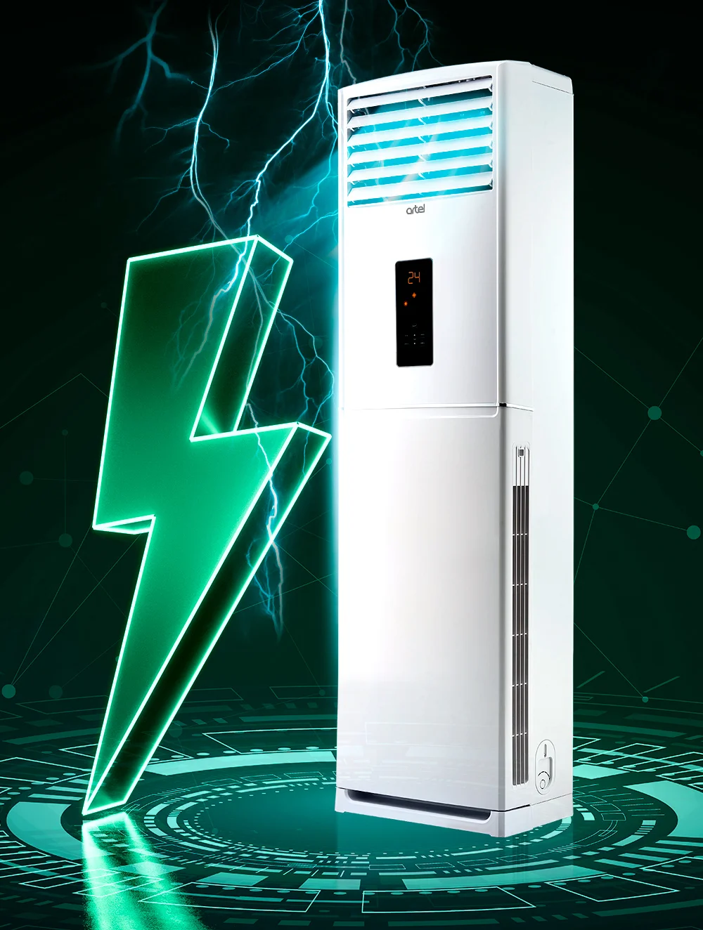 Колонный кондиционер Artel Sherdor 30 — это мощное и надежное климатическое оборудование, предназначенное для эффективного охлаждения и обогрева просторных помещений. Модель отлично подходит для залов, офисов, торговых помещений, кафе и других объектов площадью от 80 до 110 м², где требуется стабильный и равномерный климат в любое время года.