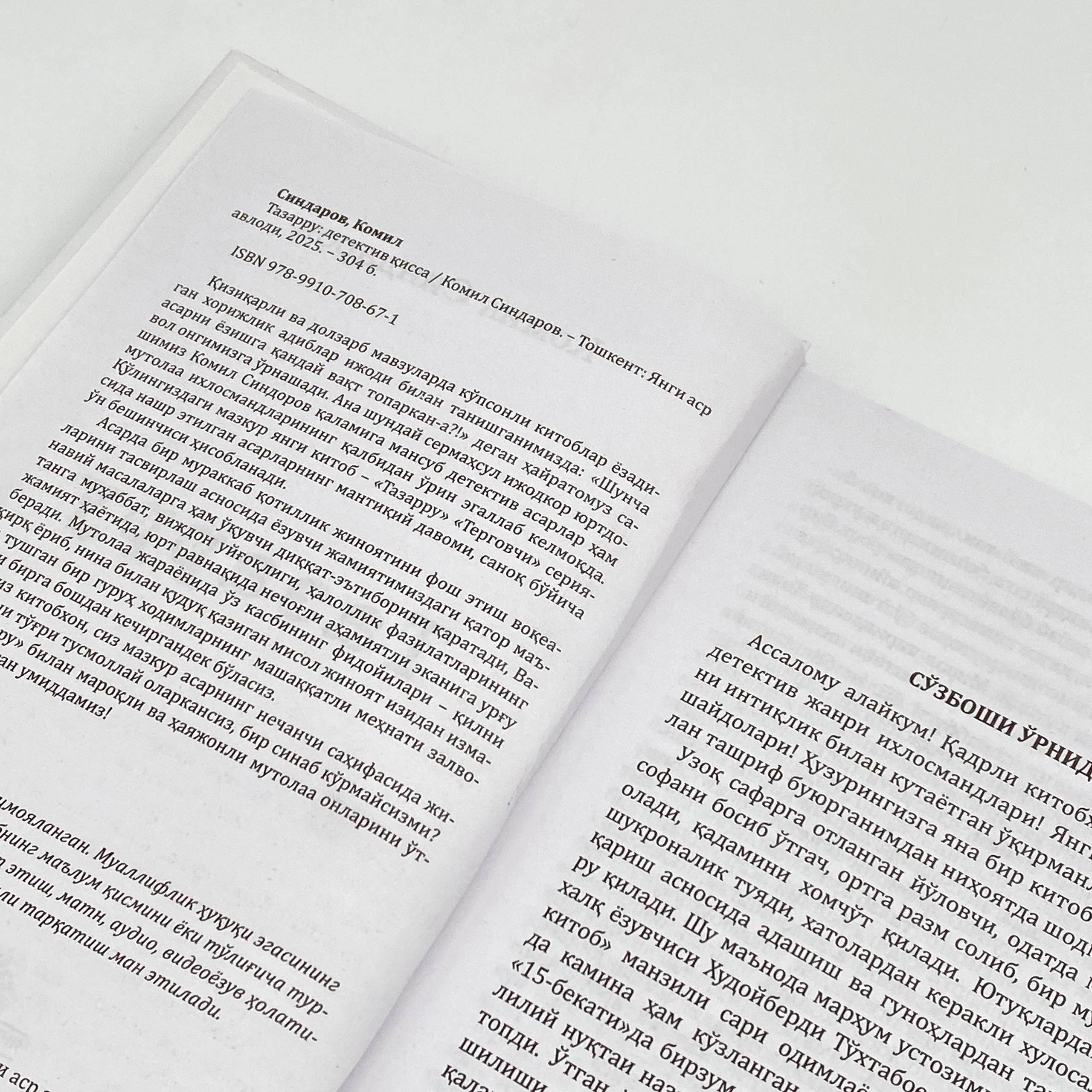 Qo'lingizdagi mazkur yangi kitob - «Tazarru» «Tergovchi» seriyasida nashr etilgan asarlarning mantiqiy davomi, sanoq bo'yicha o'n beshinchisi hisoblanadi.