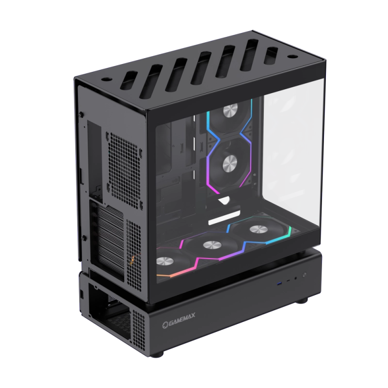 GameMax N80 BK — это современный игровой корпус с прозрачным изогнутым стеклянным дизайном, ARGB-подсветкой и мощной системой охлаждения. Благодаря большому внутреннему пространству, поддержке вертикальной установки видеокарты и широким возможностям охлаждения он является отличным выбором для сборки высокопроизводительного игрового ПК или профессиональной рабочей станции.