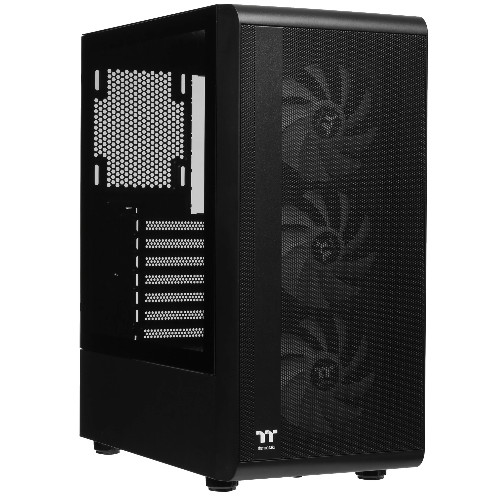 Thermaltake S200 TG (CA-1L7-00M1WN-01) — это стильный корпус в чёрном цвете, выполненный из стали, пластика и закалённого стекла. Левая панель открывается на петлях, что обеспечивает удобный доступ к компонентам.