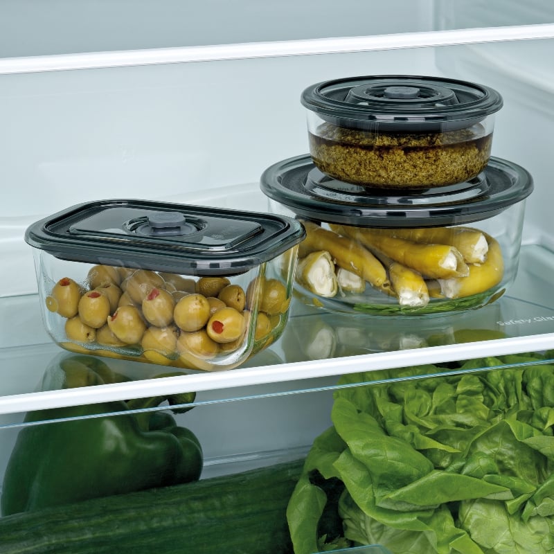 • Герметичная крышка с уплотнителем — защищает продукты от влаги, посторонних запахов и сохраняет свежесть.